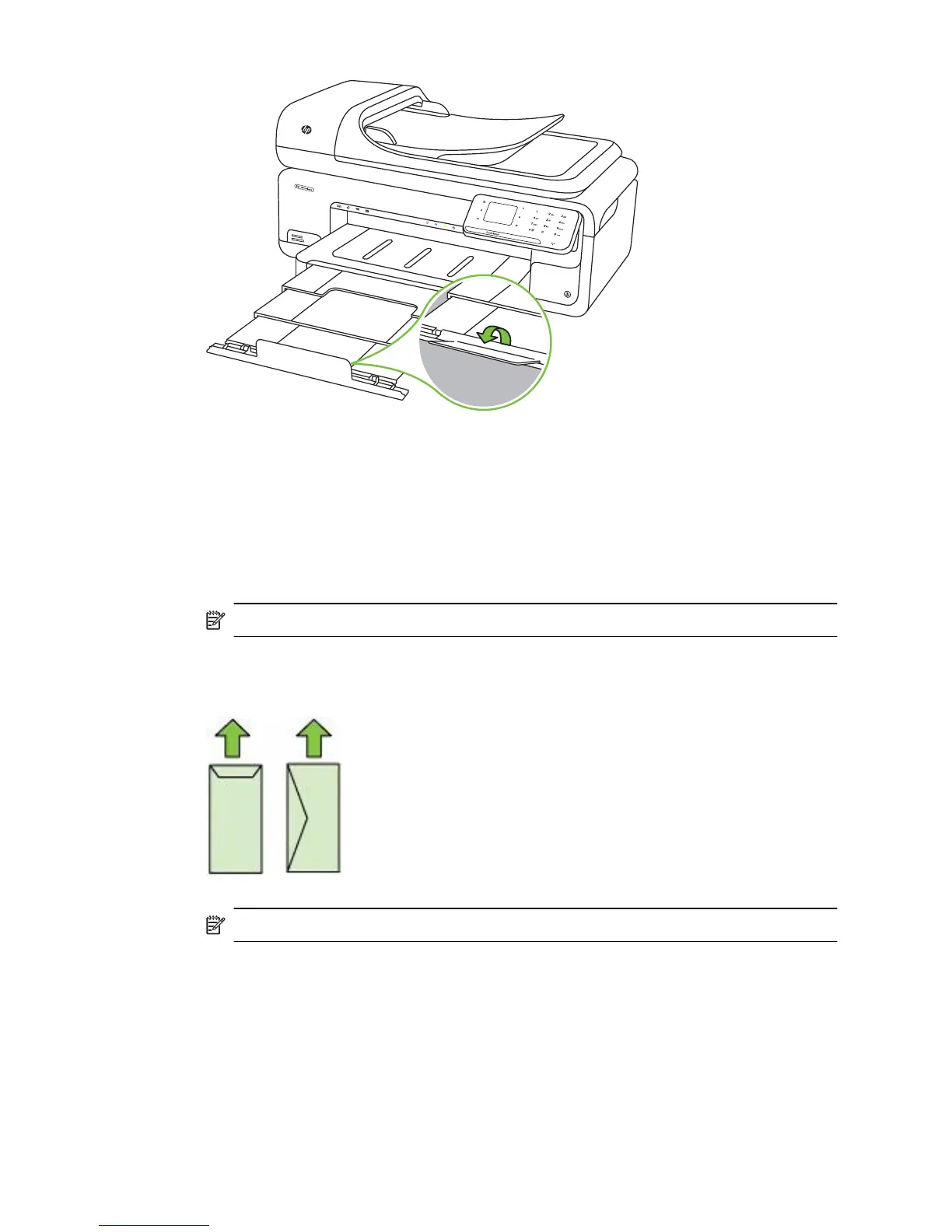 3. Load envelopes according to the graphic. Make sure the stack of envelopes does not