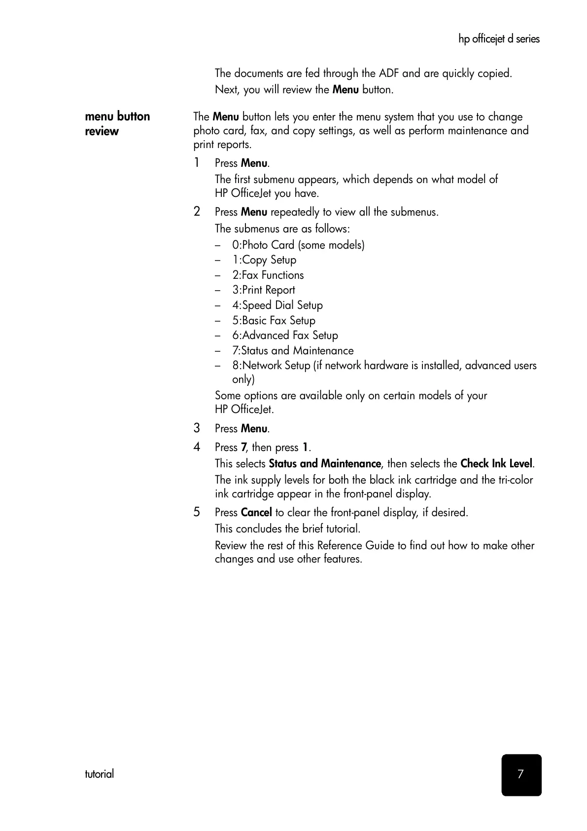 This selects Status and Maintenance, then selects the Check Ink Level.