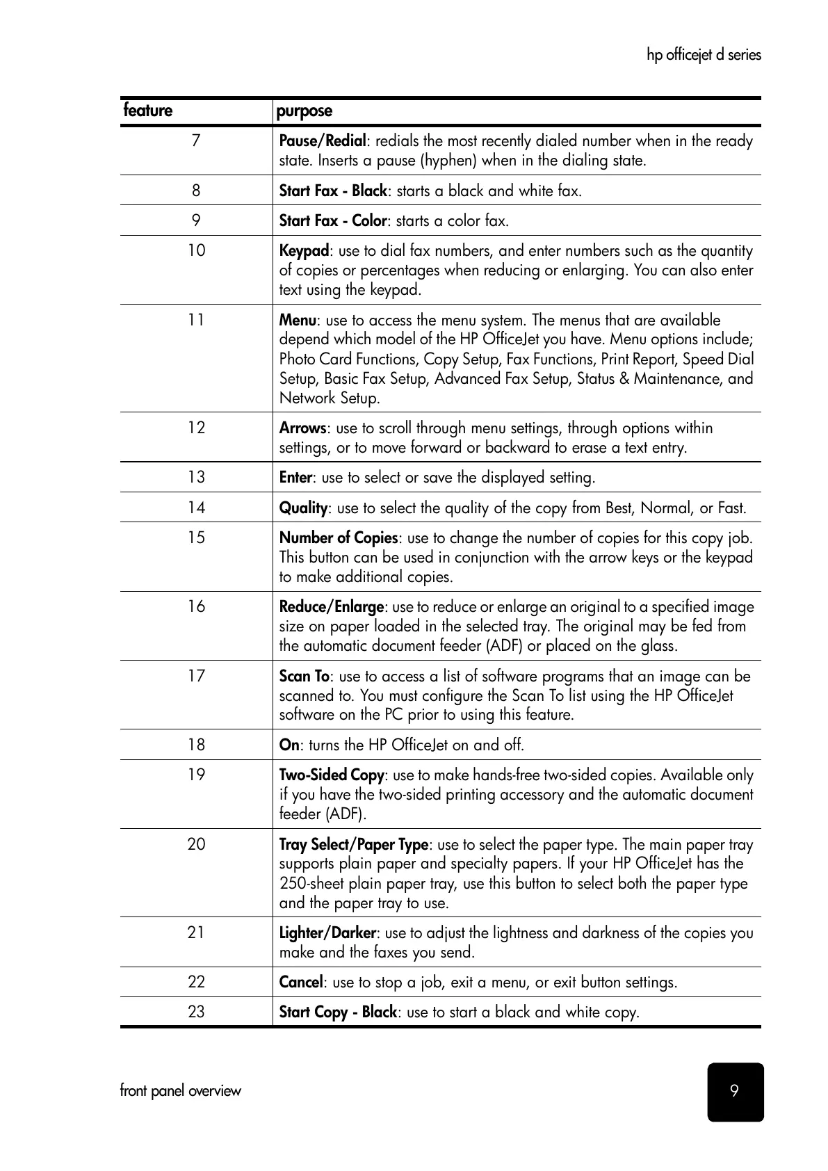 22 Cancel: use to stop a job, exit a menu, or exit button settings.