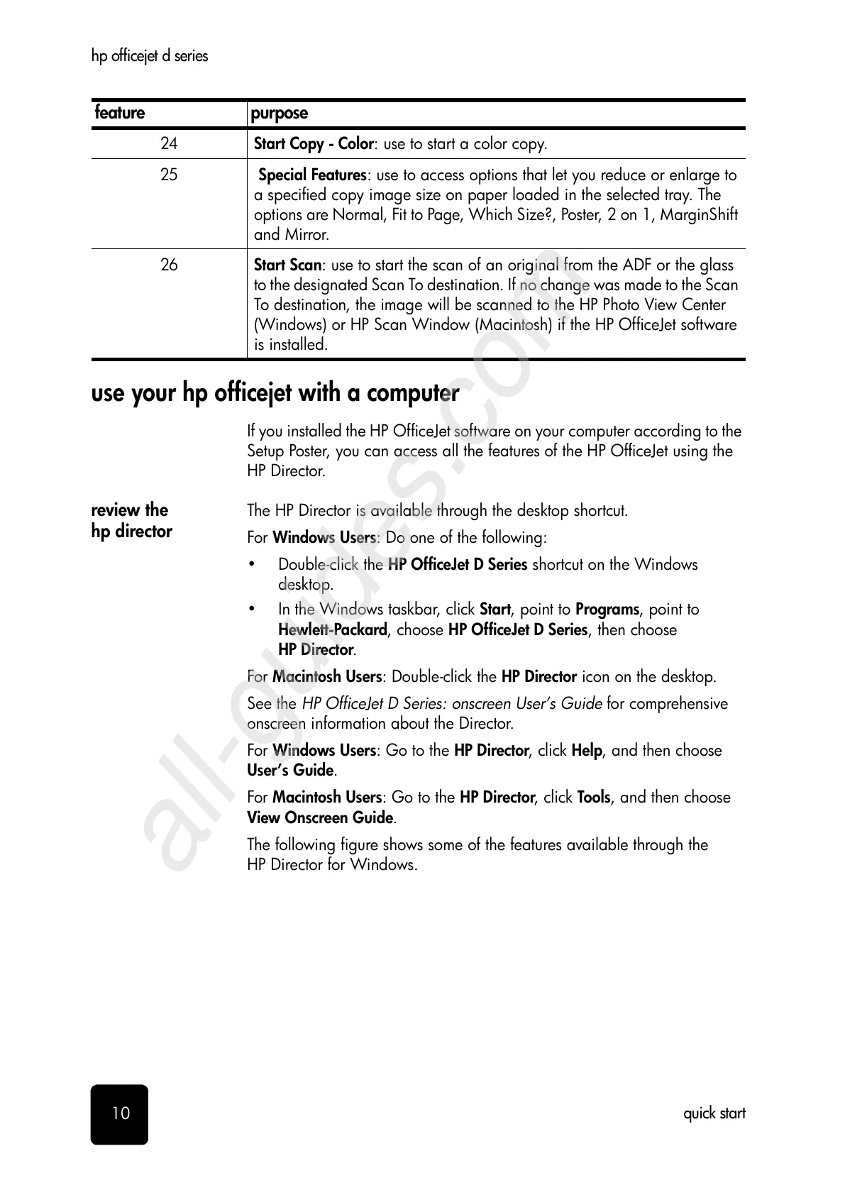See the HP OfficeJet D Series: onscreen User’s Guide for comprehensive