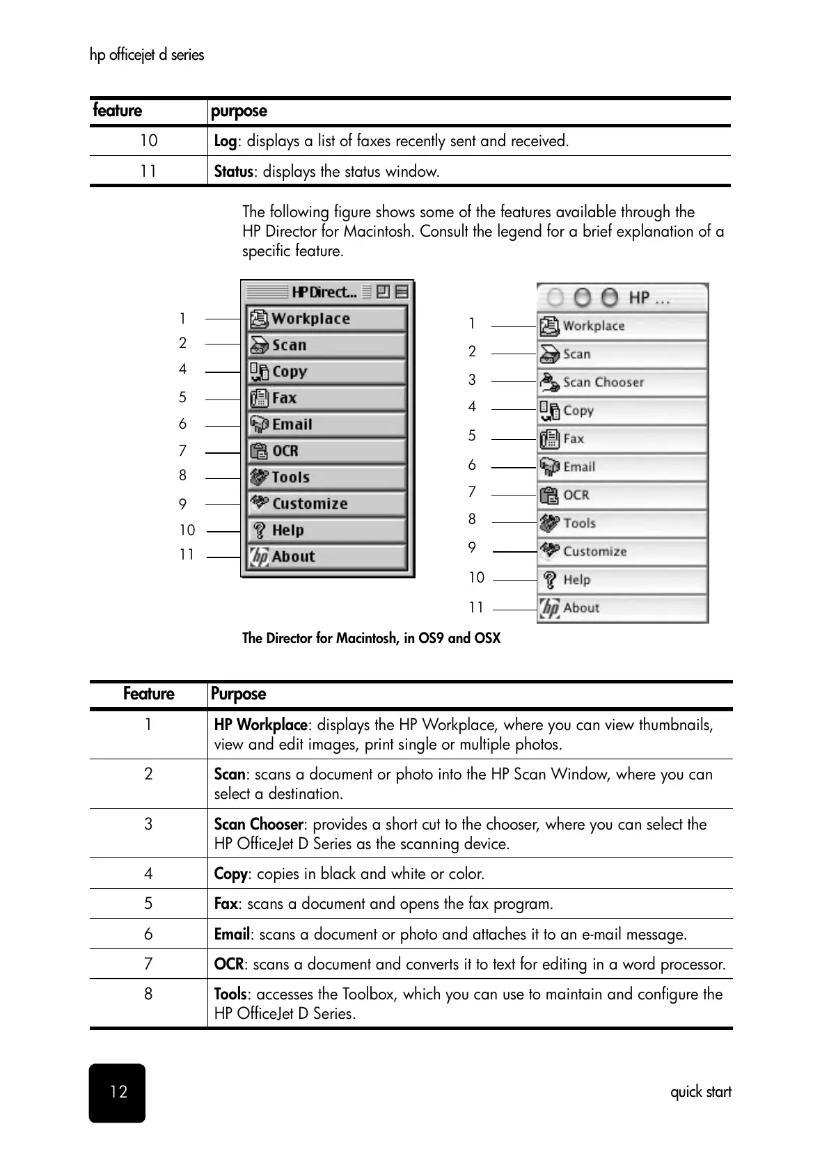 HP Director for Macintosh. Consult the legend for a brief explanation of a