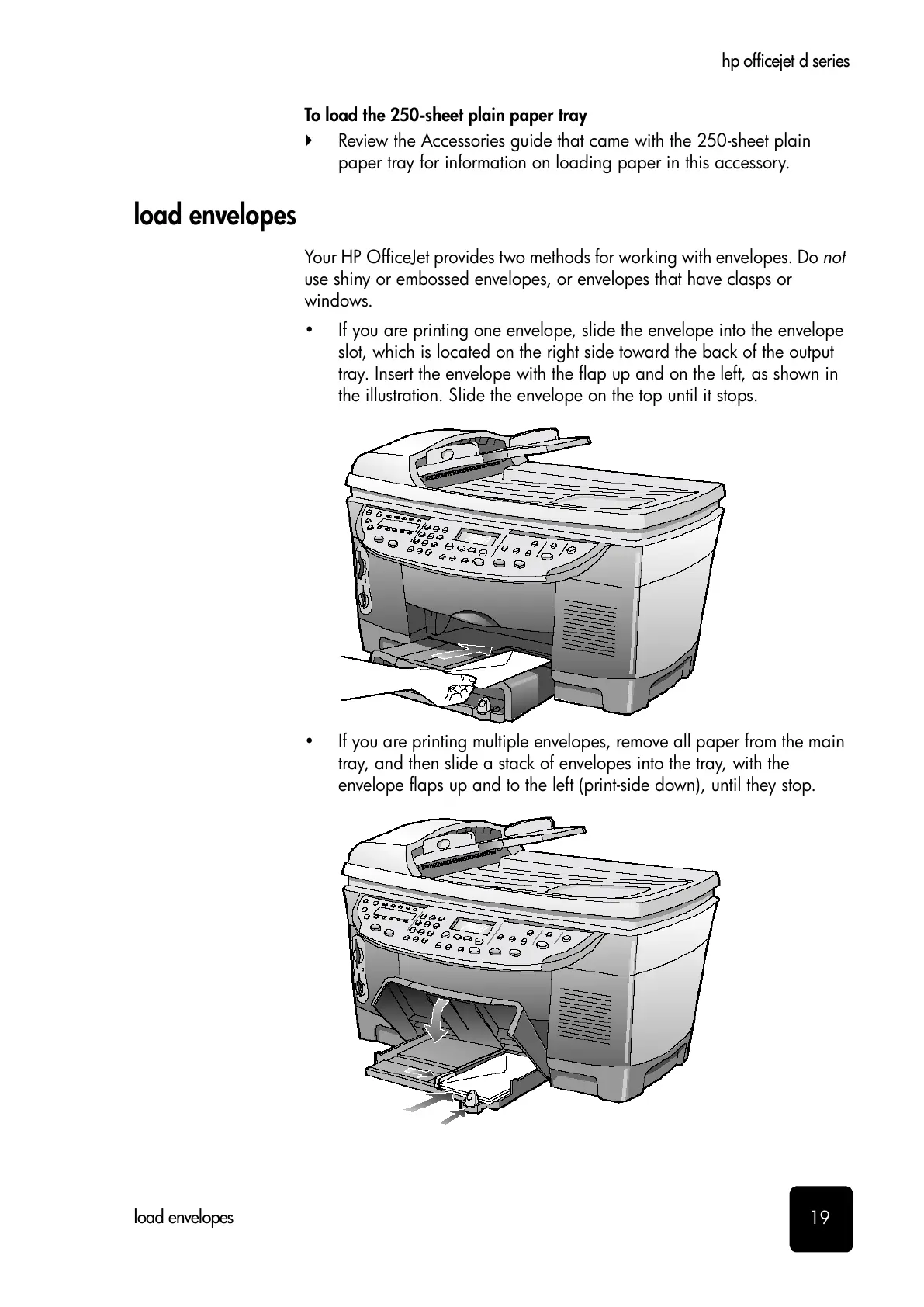 Your HP OfficeJet provides two methods for working with envelopes. Do not