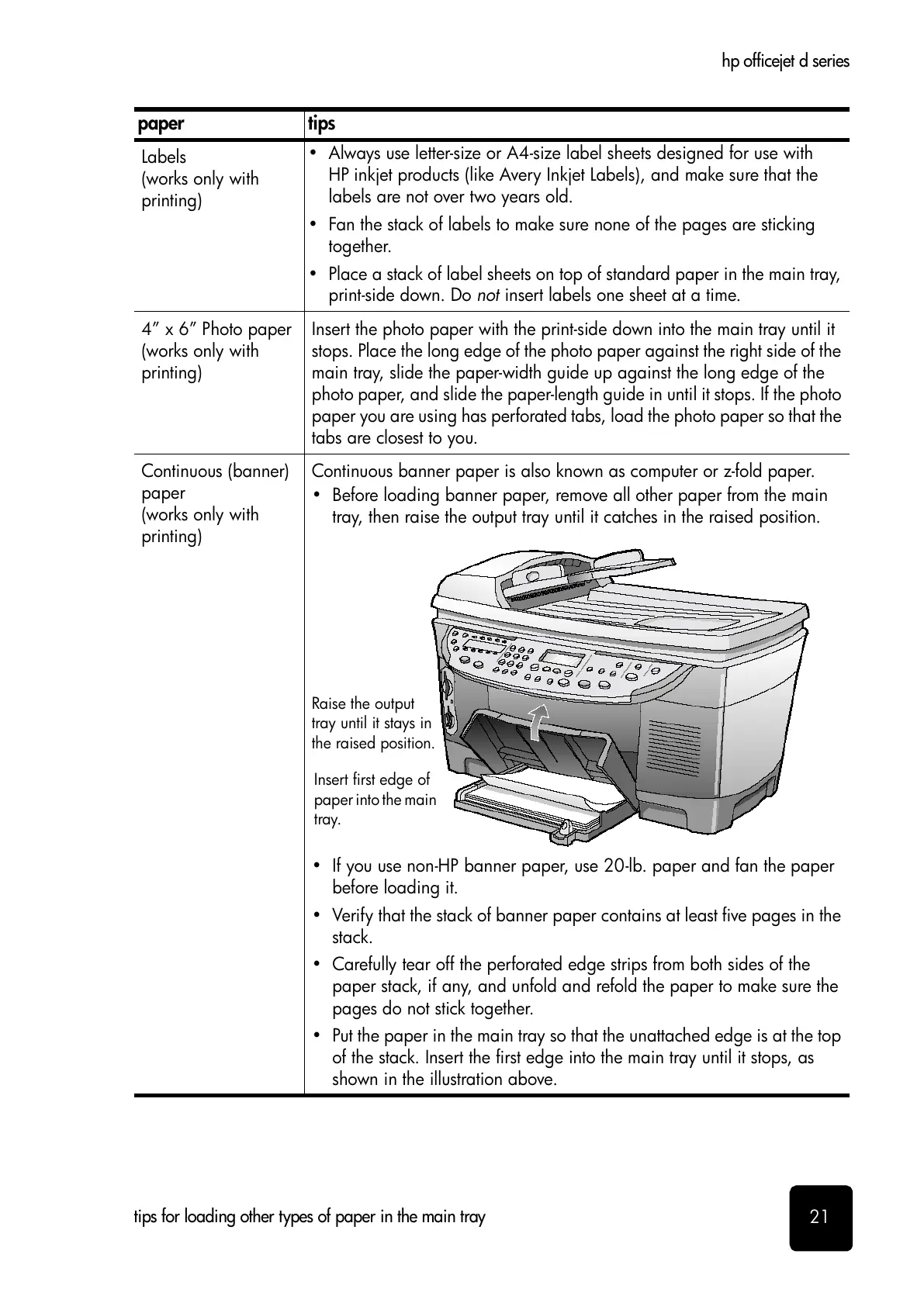 • If you use non-HP banner paper, use 20-lb. paper and fan the paper