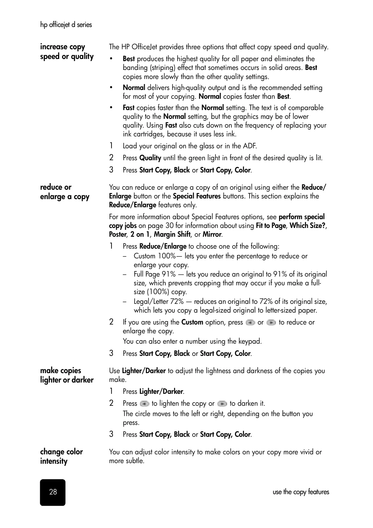 The HP OfficeJet provides three options that affect copy speed and quality.