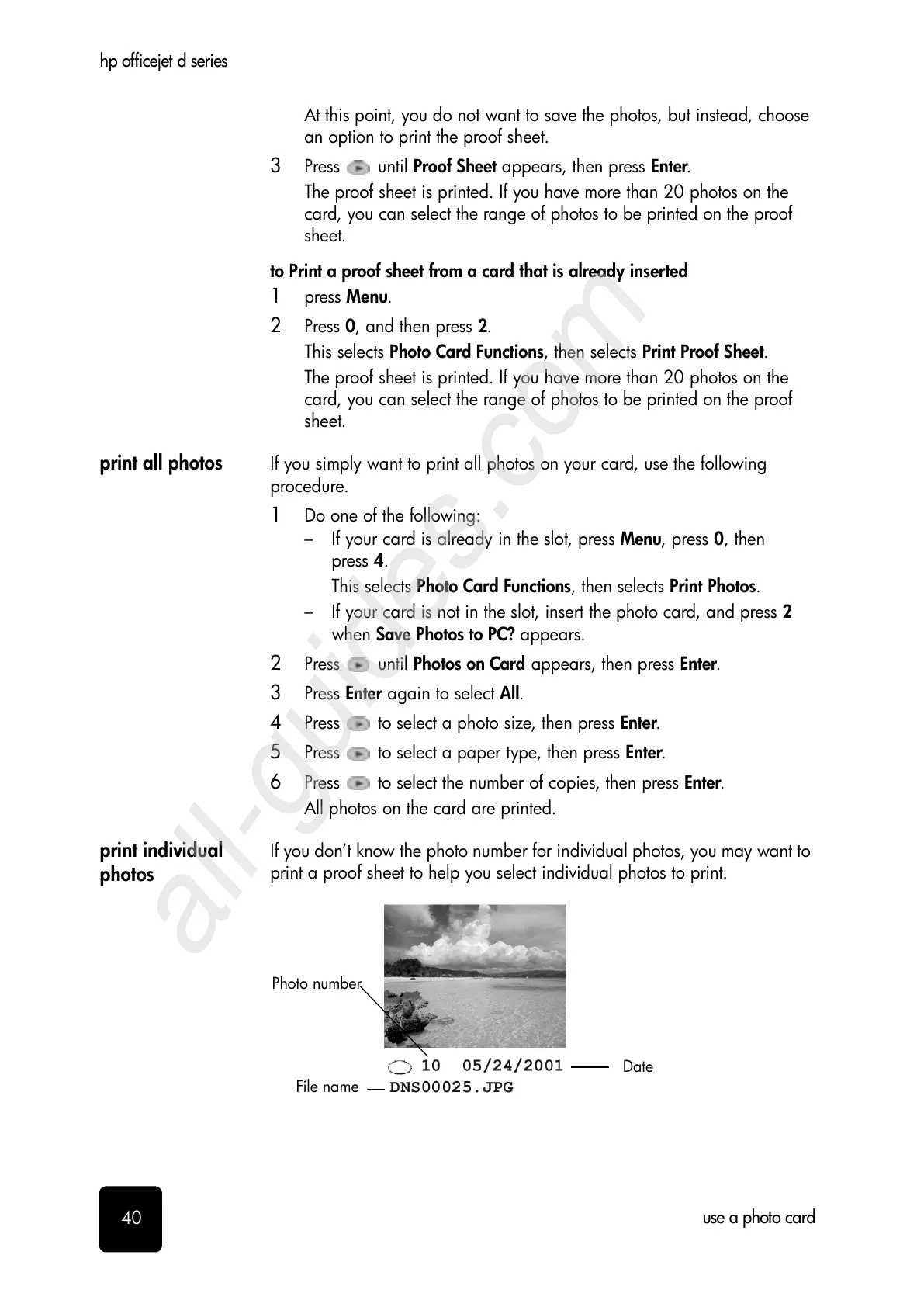 print all photos If you simply want to print all photos on your card, use the following