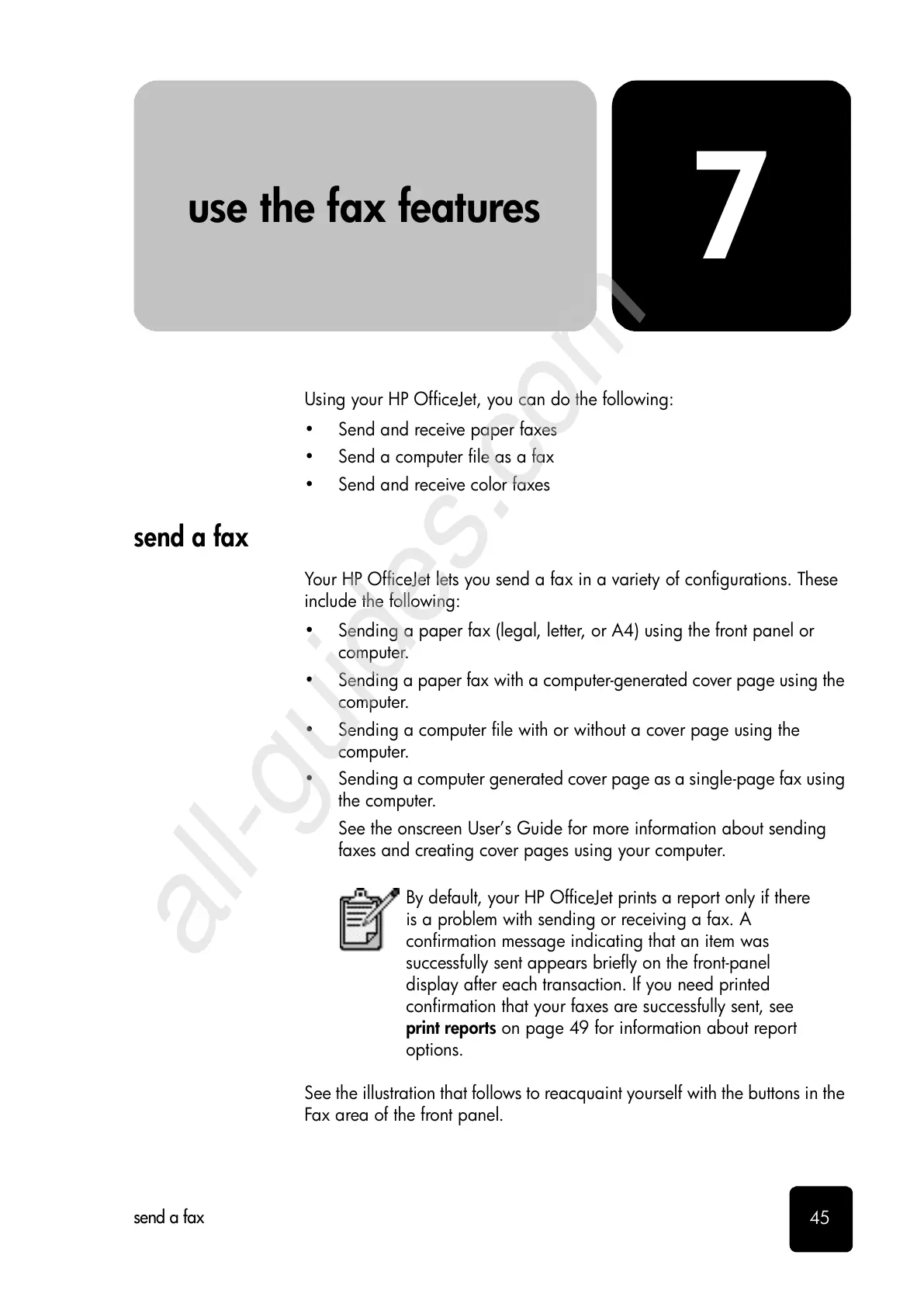 Your HP OfficeJet lets you send a fax in a variety of configurations. These