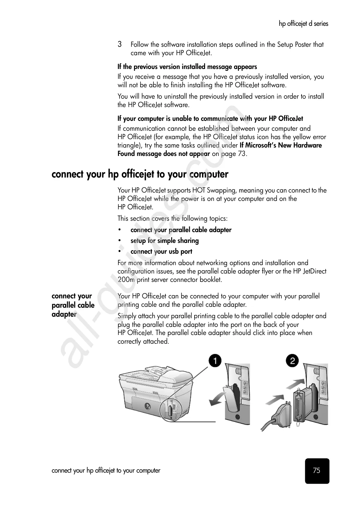 configuration issues, see the parallel cable adapter flyer or the HP JetDirect
