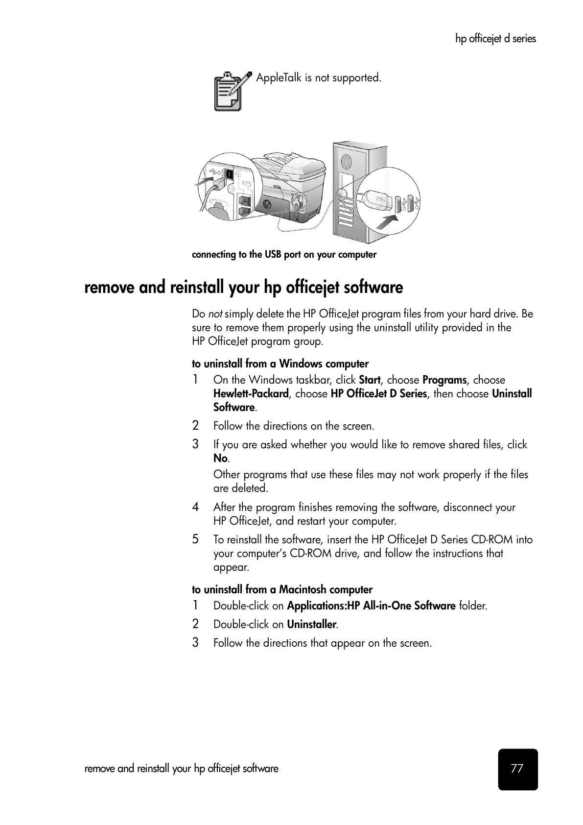 Hewlett-Packard, choose HP OfficeJet D Series, then choose Uninstall