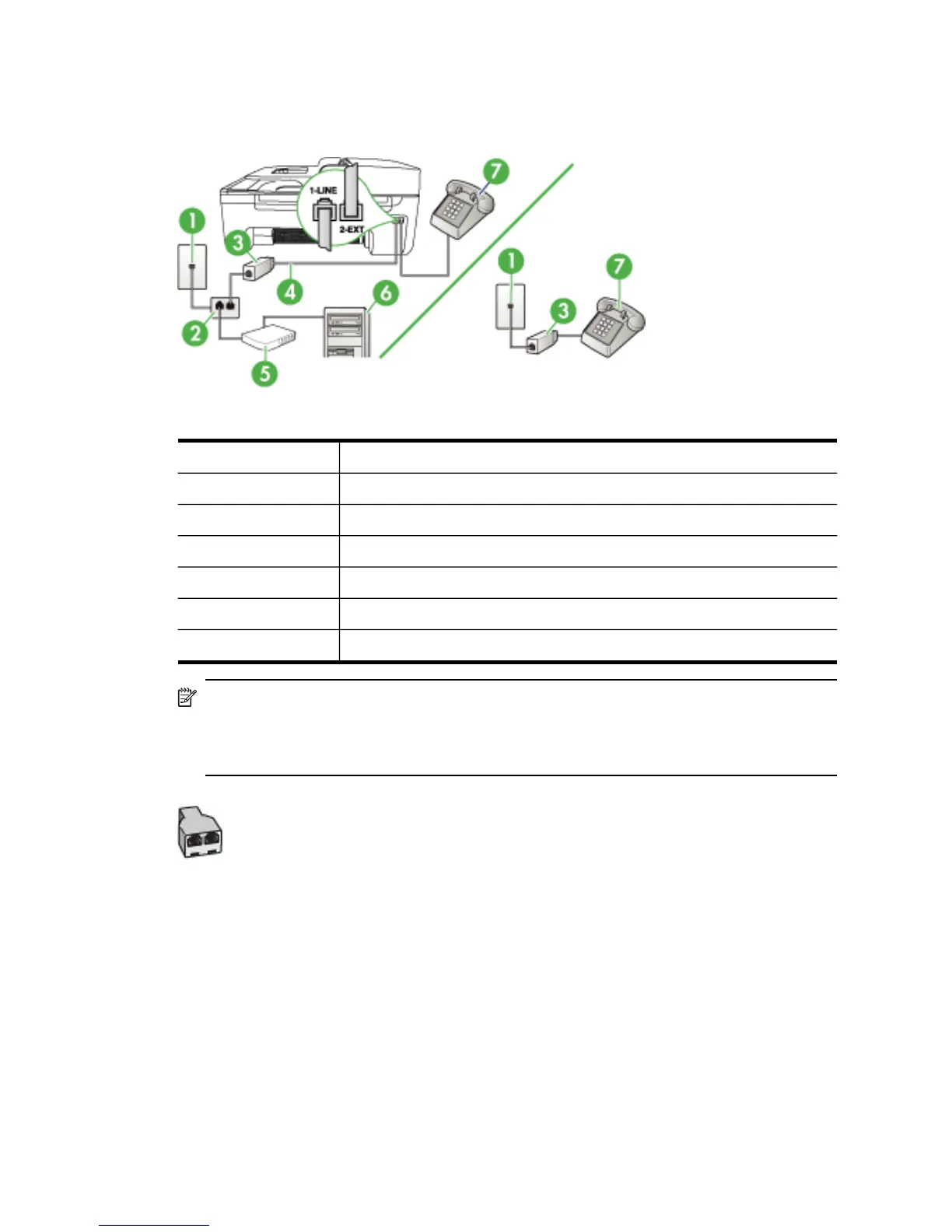 RJ-11 port on the front and two RJ-11 ports on the back. Do not use a 2–line