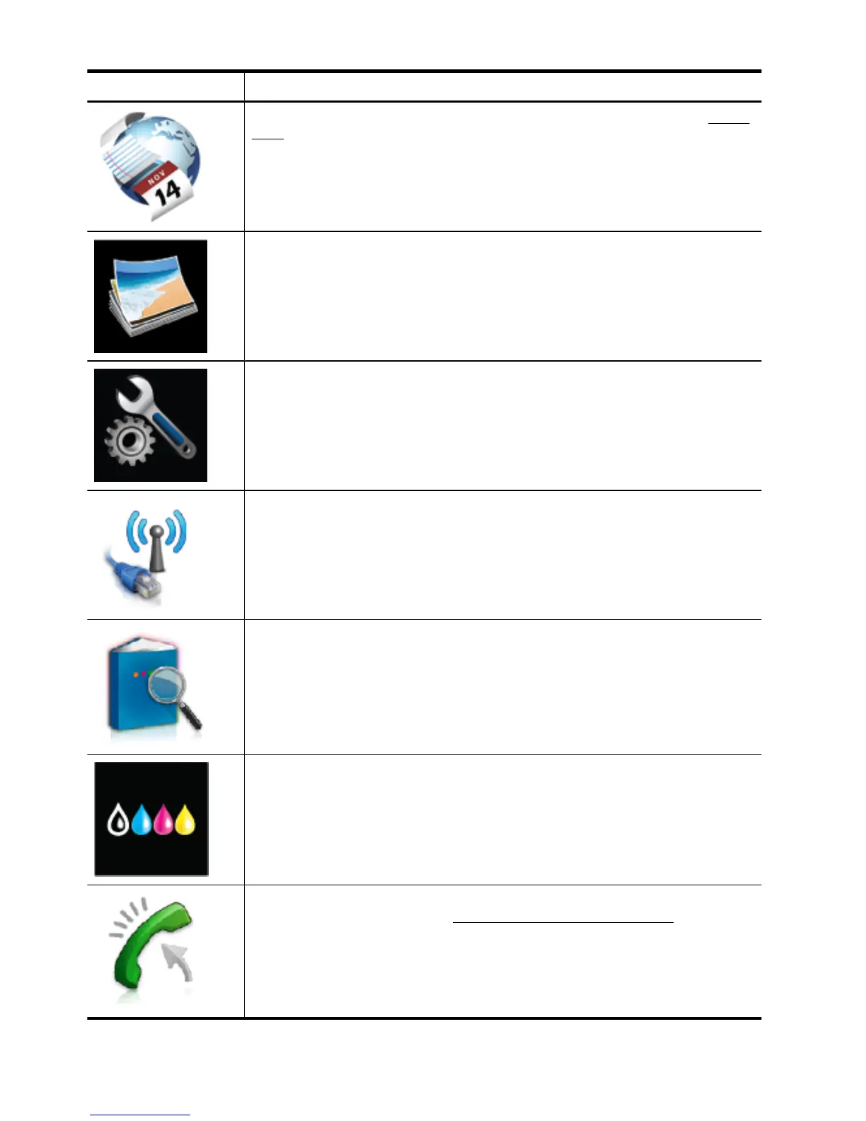 Displays a screen where you can use HP Apps. For more information, see Printer