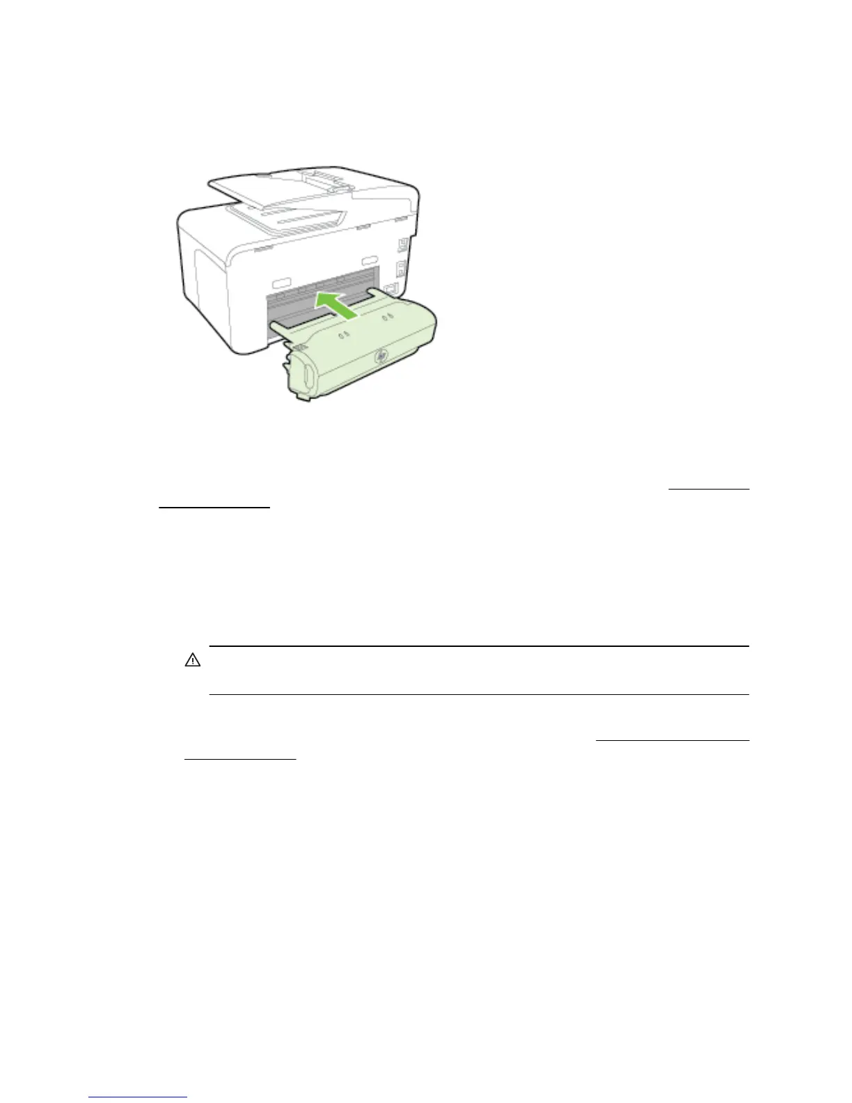 Slide the duplexer into the back of the printer until the unit locks into place. Do not press