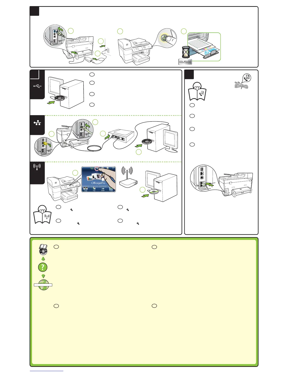 Connect power cord and adapter, turn on all-in-one, and wait for alignment page to print.