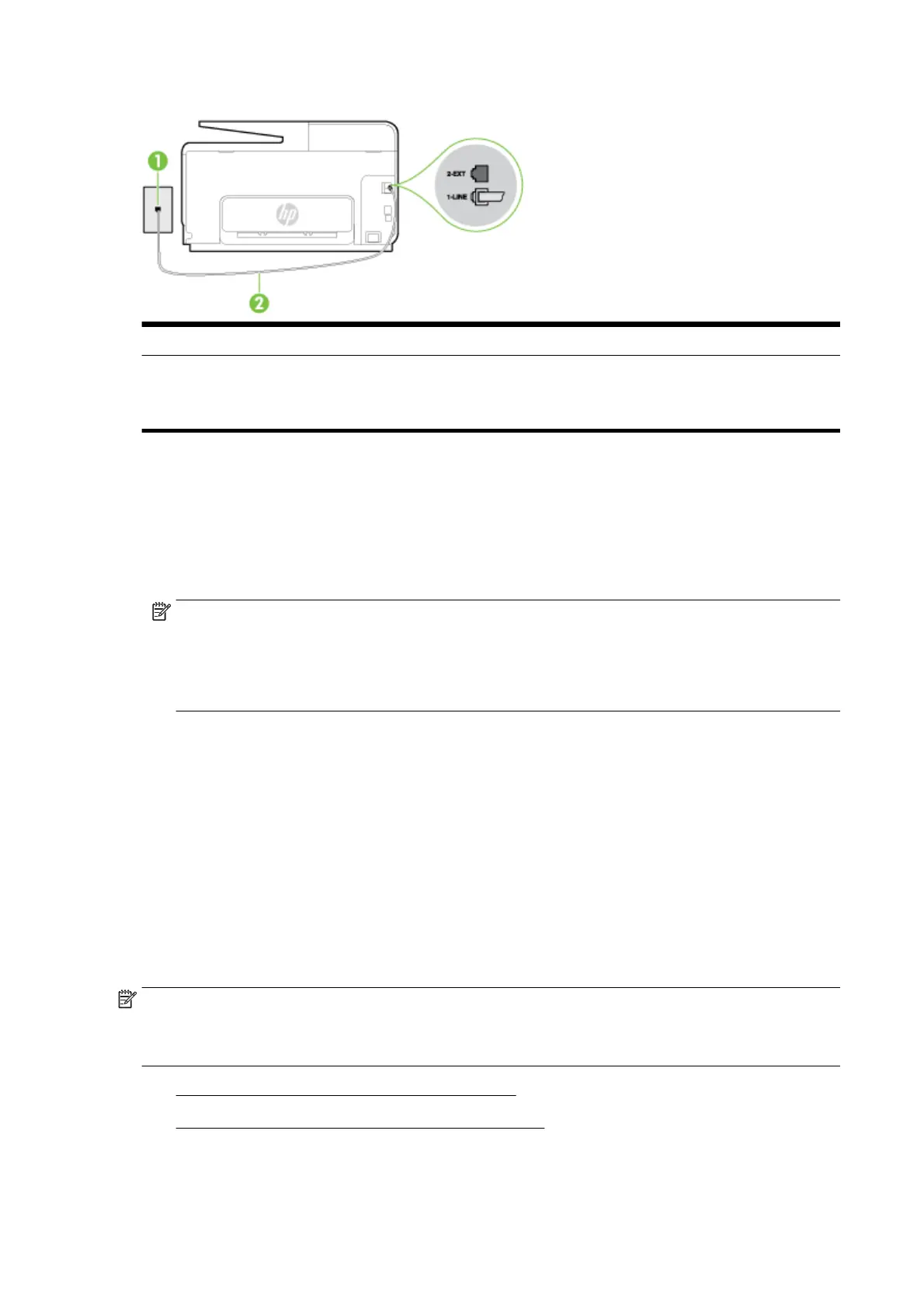 wall jack, then connect the other end to the port labeled 1-LINE on the back of the printer.