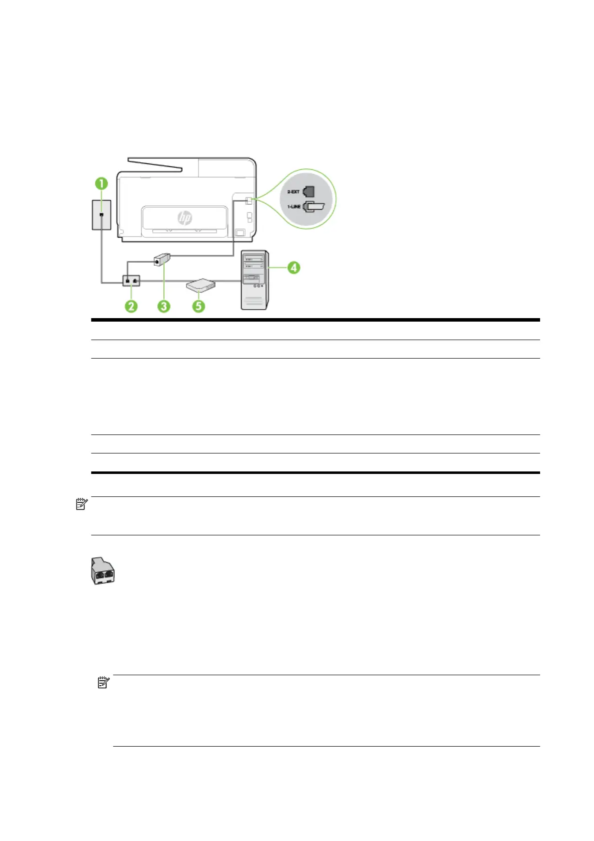 and two RJ-11 ports on the back. Do not use a 2–line phone splitter, a serial splitter, or a parallel