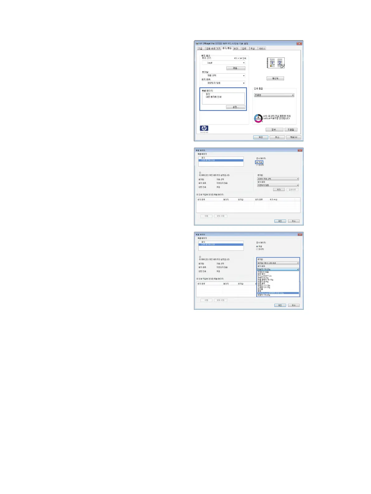 6. 용지함용지 종류 드롭다운 목록에서 해당