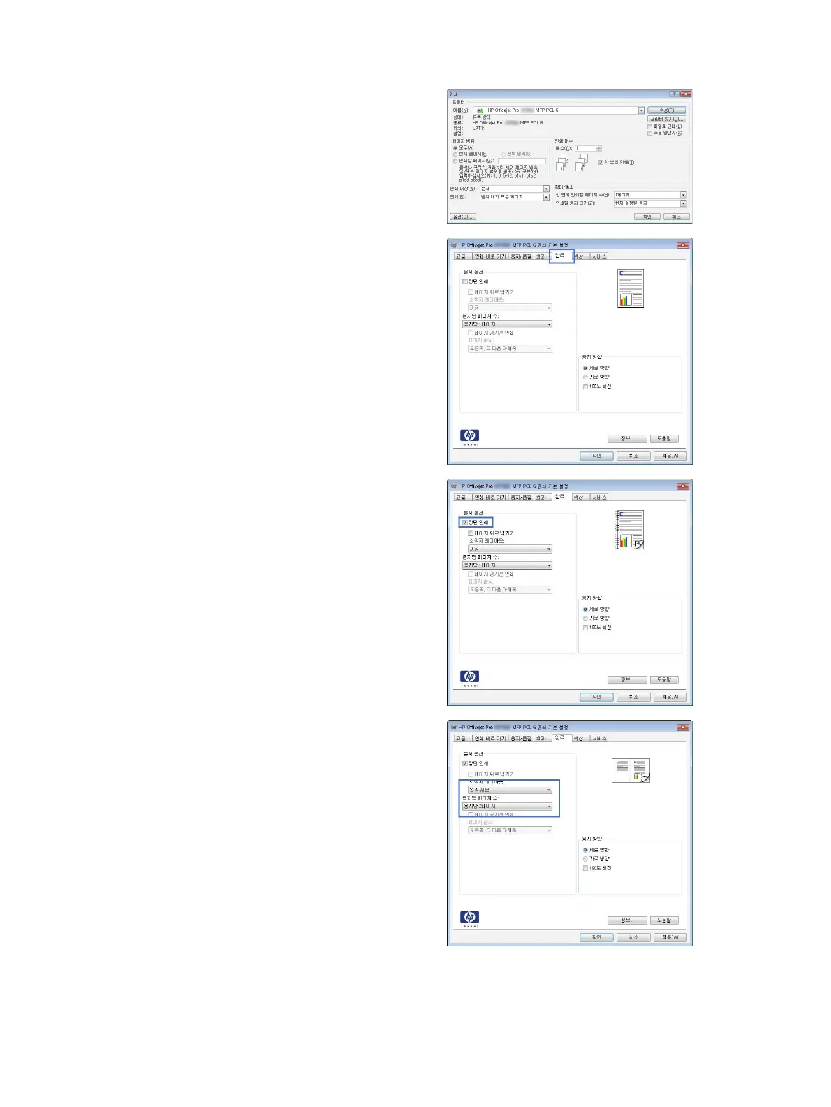 또는 오른쪽 제본 옵션을 누릅니다. 용지당