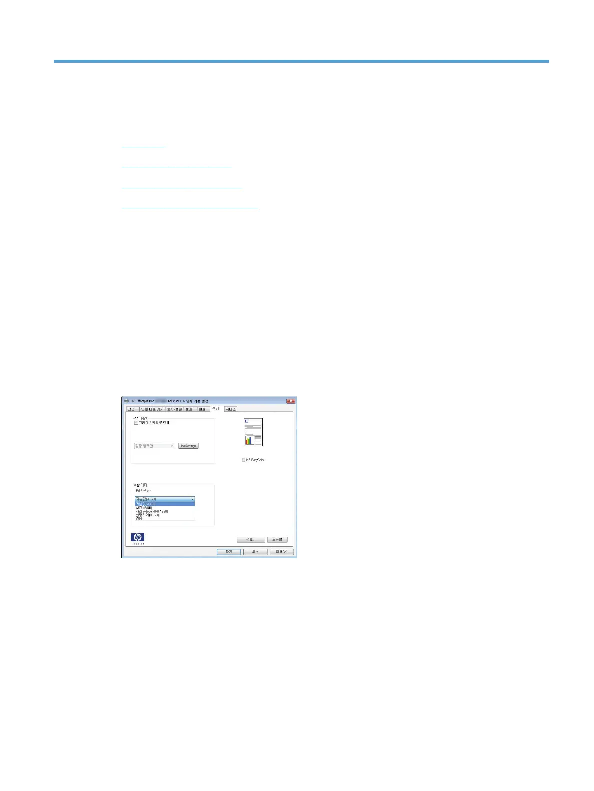 HP EasyColor 옵션 사용