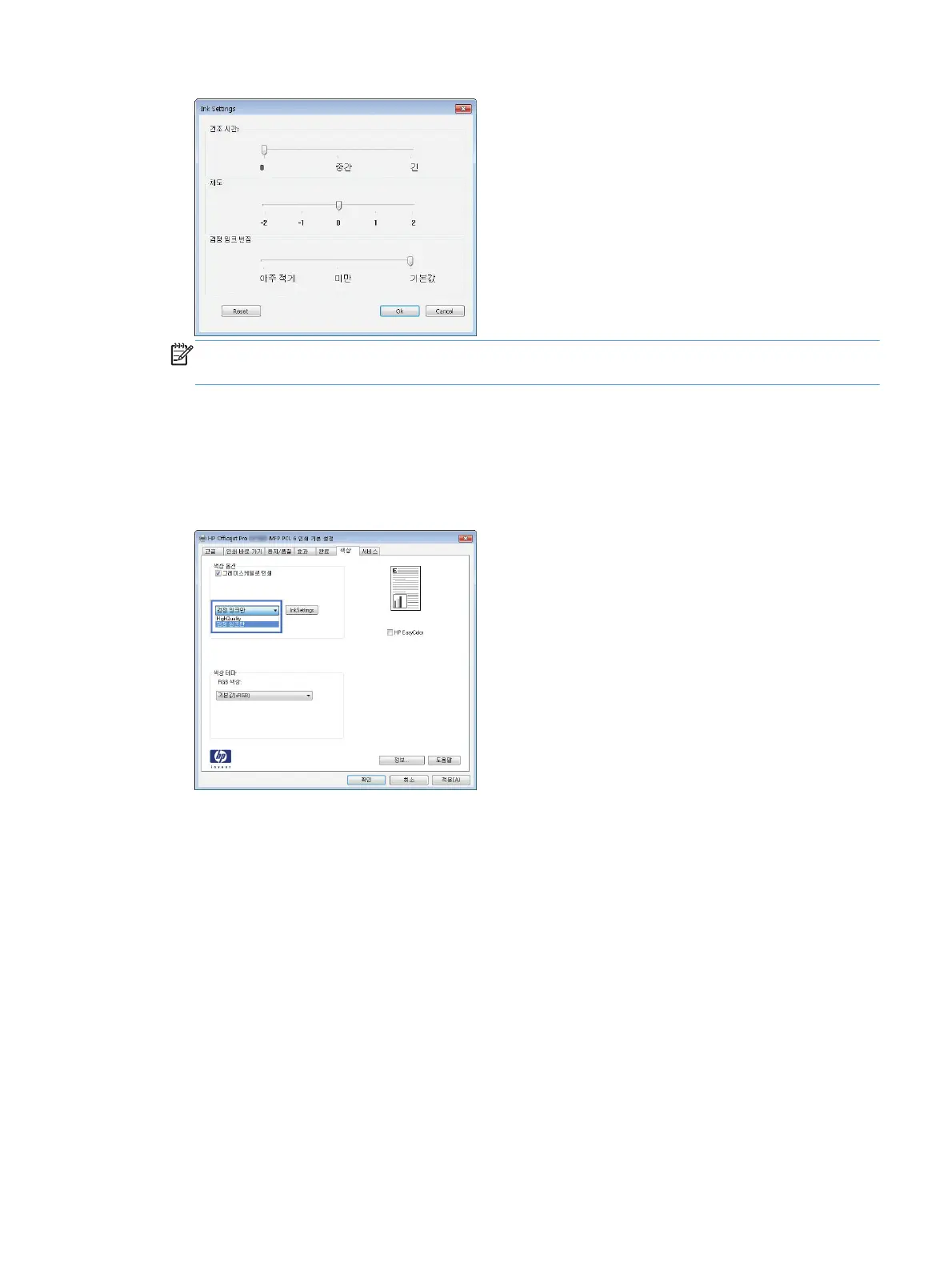 또한 이 옵션을 사용하여 초안을 인쇄하거나 컬러 카트리지를 더 오래 쓸 수 있습니다.