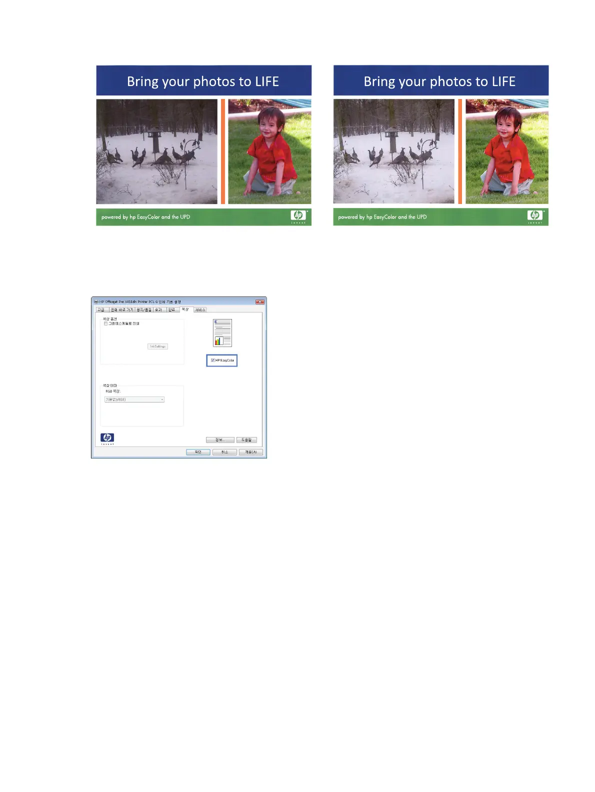HP EasyColor 옵션은 HP PCL 6 프린터 드라이버 및 HP Mac Postscript 프린터 드라이버에서 기본