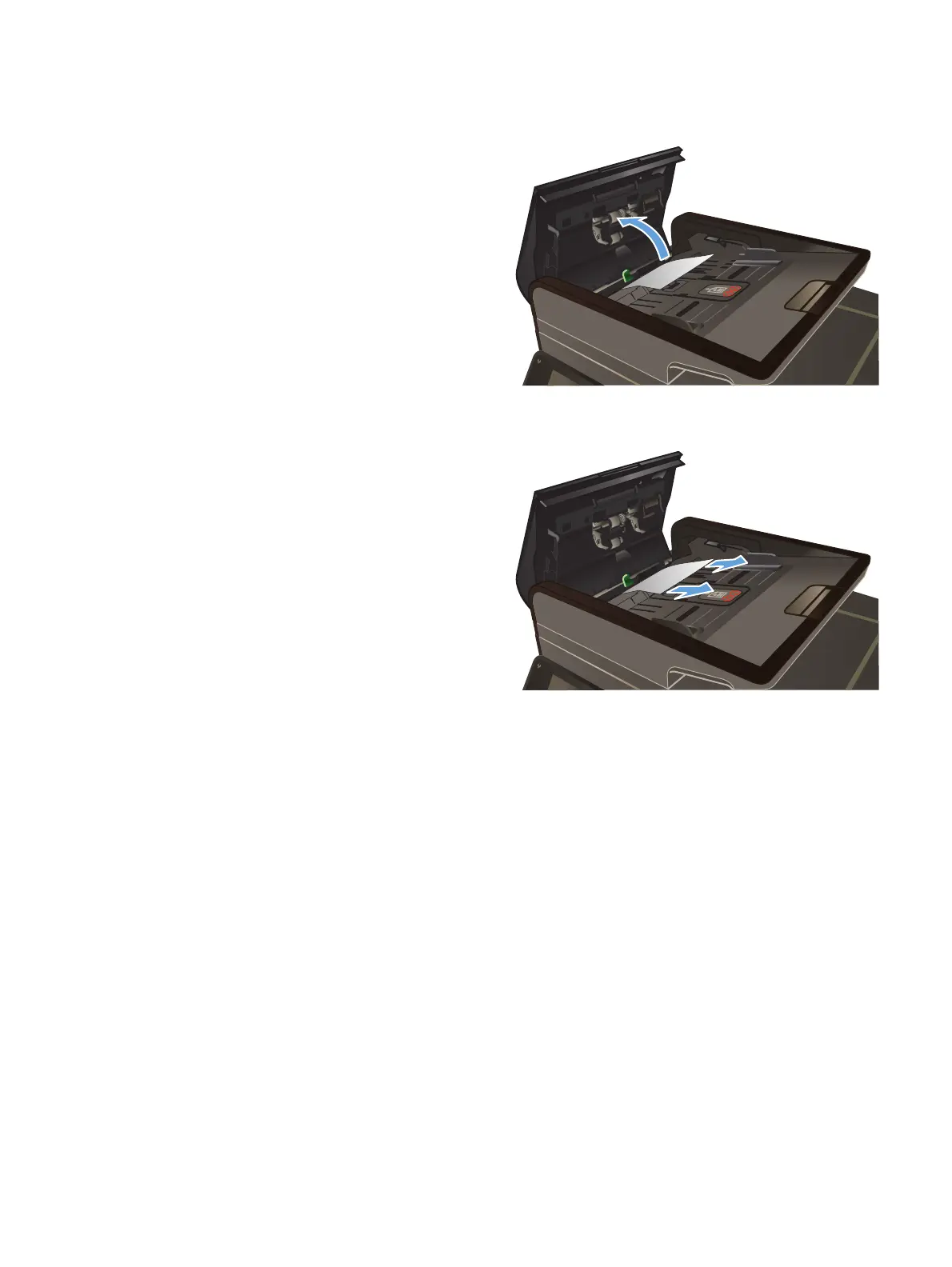 3. 문서 공급기 롤러 어셈블리를 들어올려 걸린