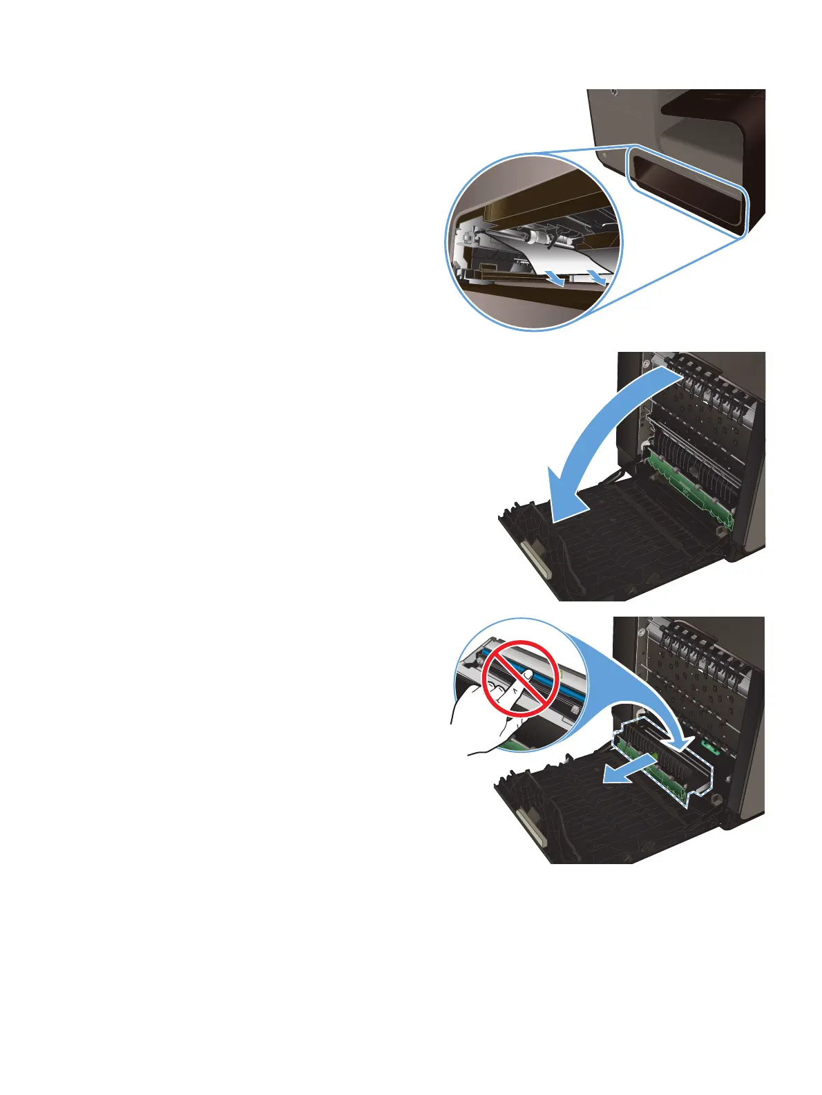 2. 용지함 2 를 분리하고 걸린 용지를 오른쪽으