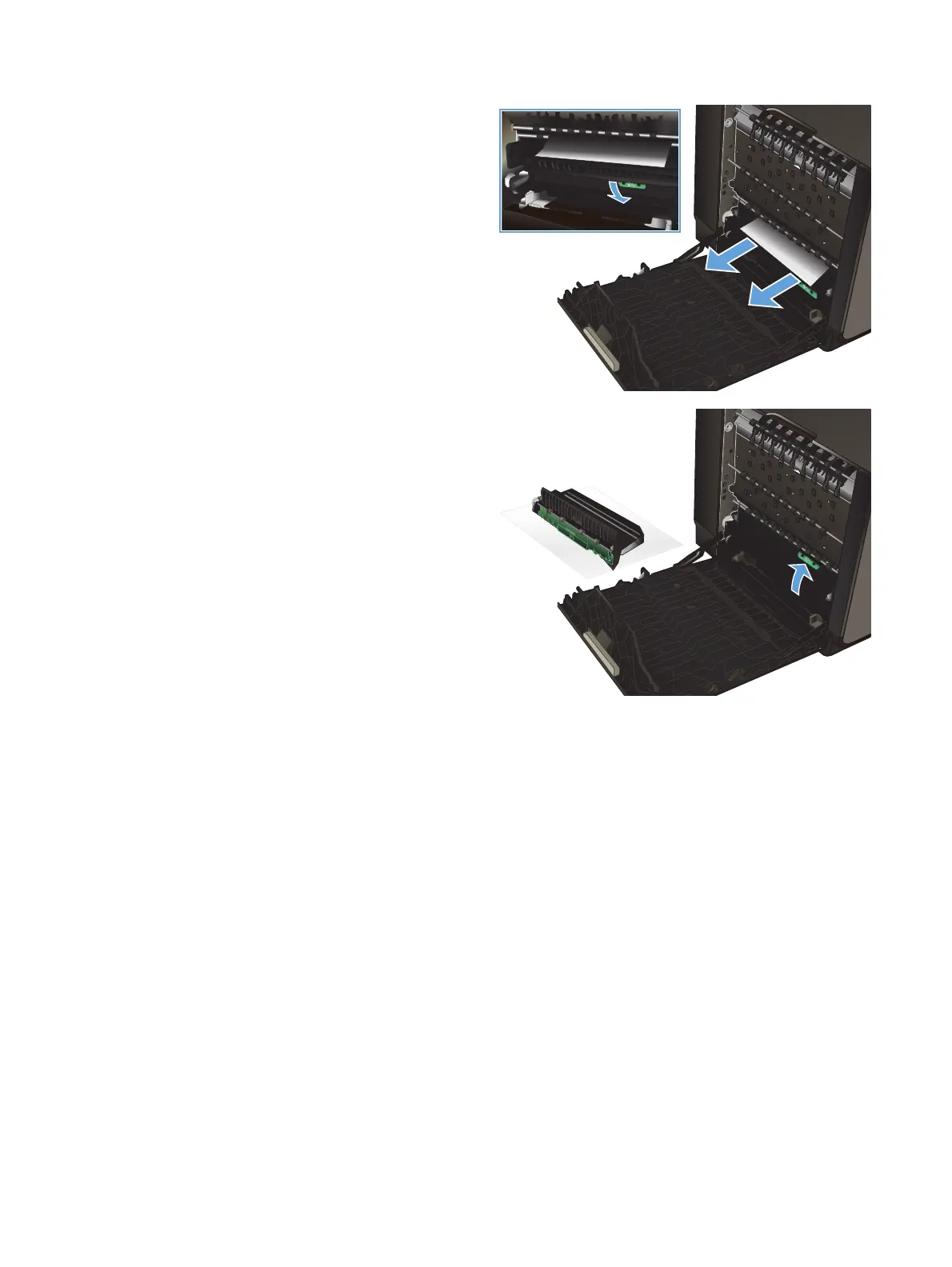 6. 초록색 탭을 들어 올려 압반을 다시 작동 위치