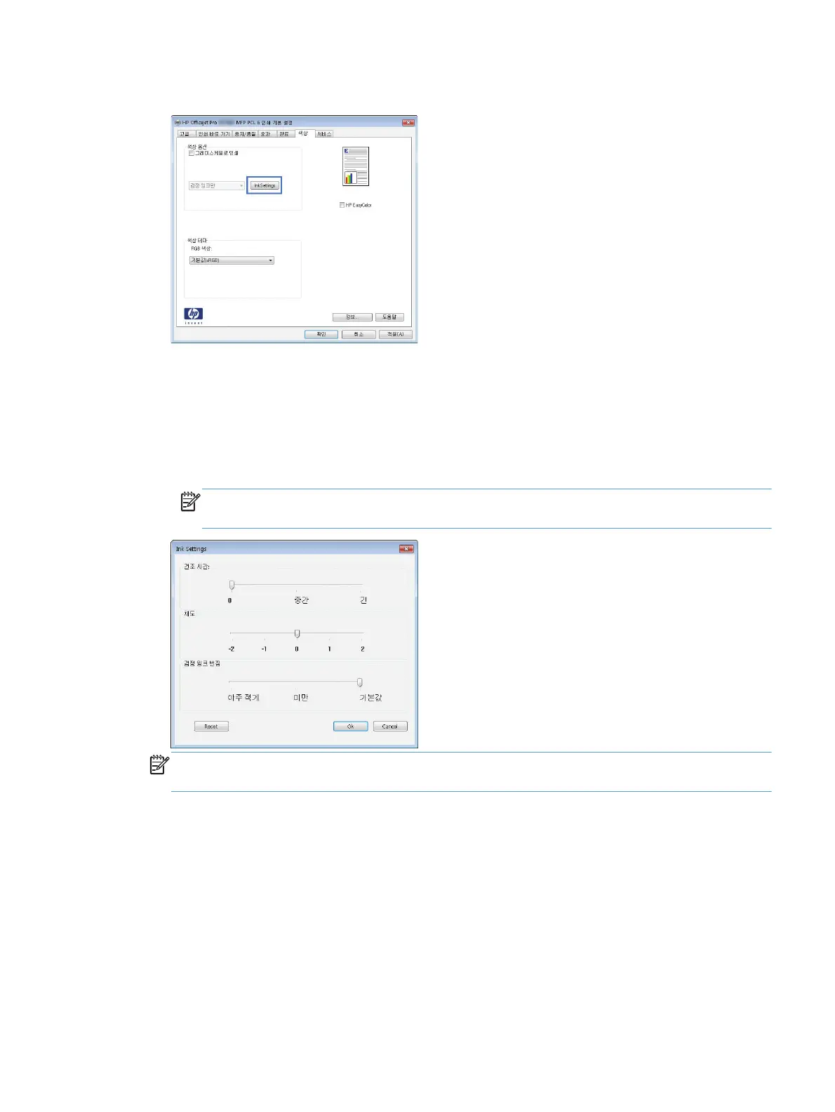 참고: 색상 설정을 수동으로 변경하면 출력물에 영향을 줄 수 있습니다. 색상 그래픽 전문가만