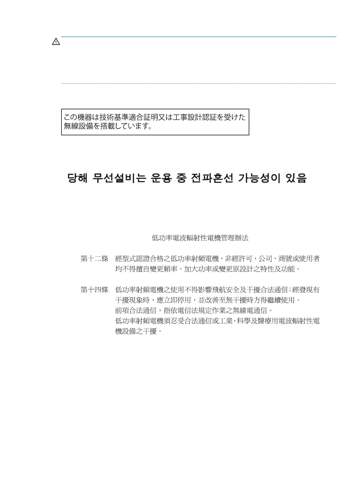 경고! Exposure to Radio Frequency Radiation The radiated output power of this device is below