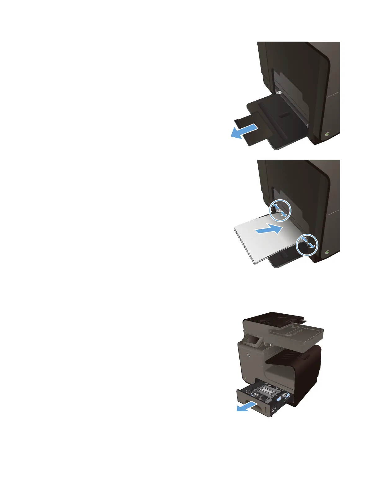 3. 용지 조정대를 완전히 확장한 후 용지 묶음을