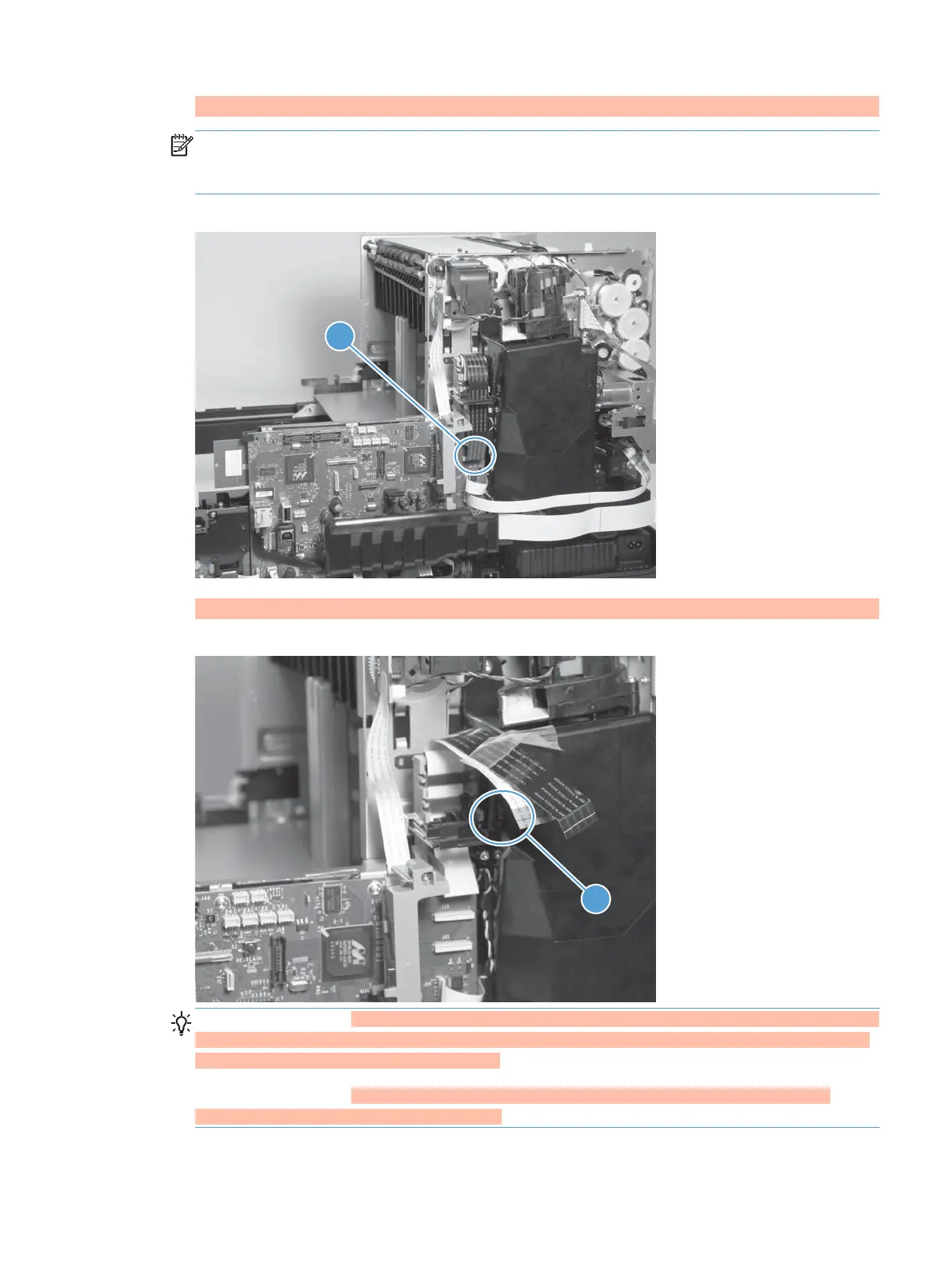 5. Unthread the three flex cables through the ferrite holder (callout 1).