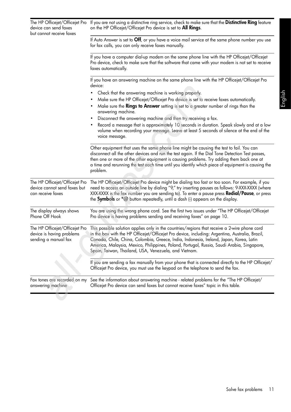 Officejet Pro device can send faxes but cannot receive faxes“ topic in this table.