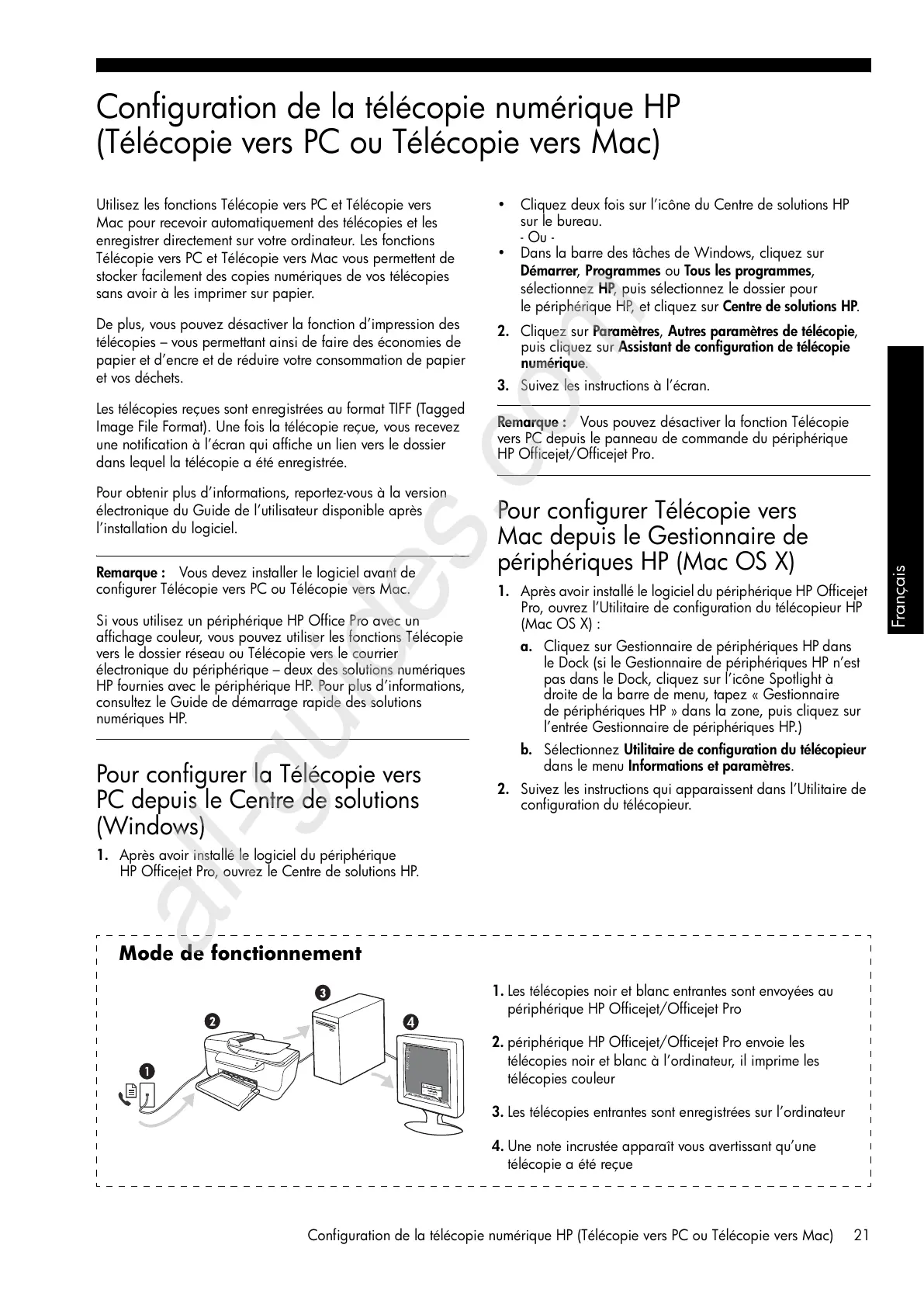 Configuration de la télécopie numérique HP (Télécopie vers PC ou Télécopie vers Mac) 21