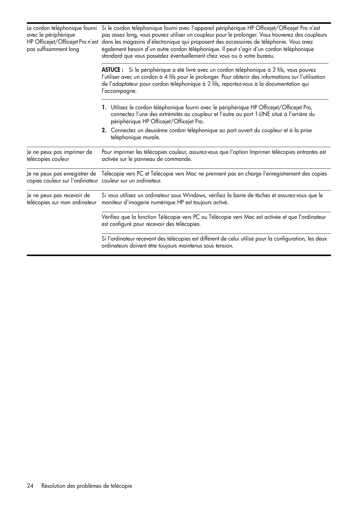 Si le cordon téléphonique fourni avec l’appareil périphérique HP Officejet/Officejet Pro n’est