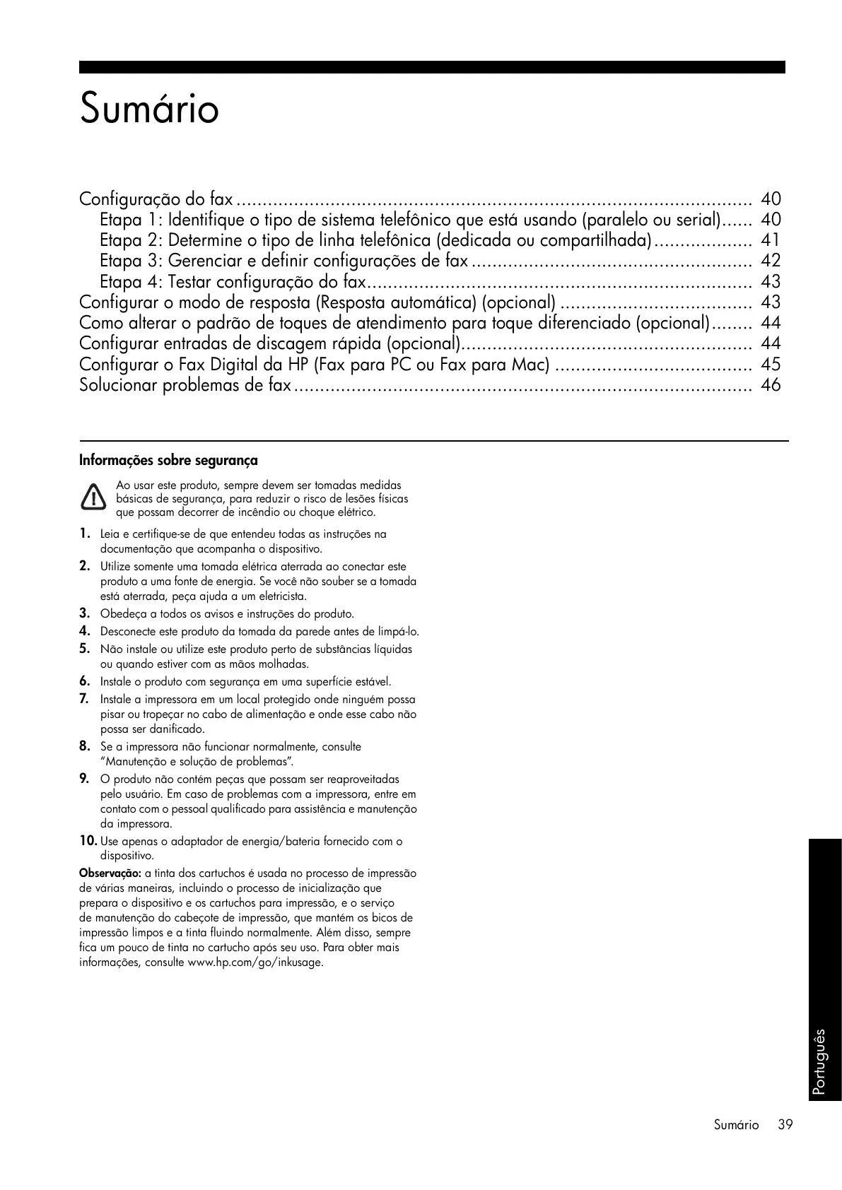 Etapa 4: Testar configuração do fax.......................................................................... 43