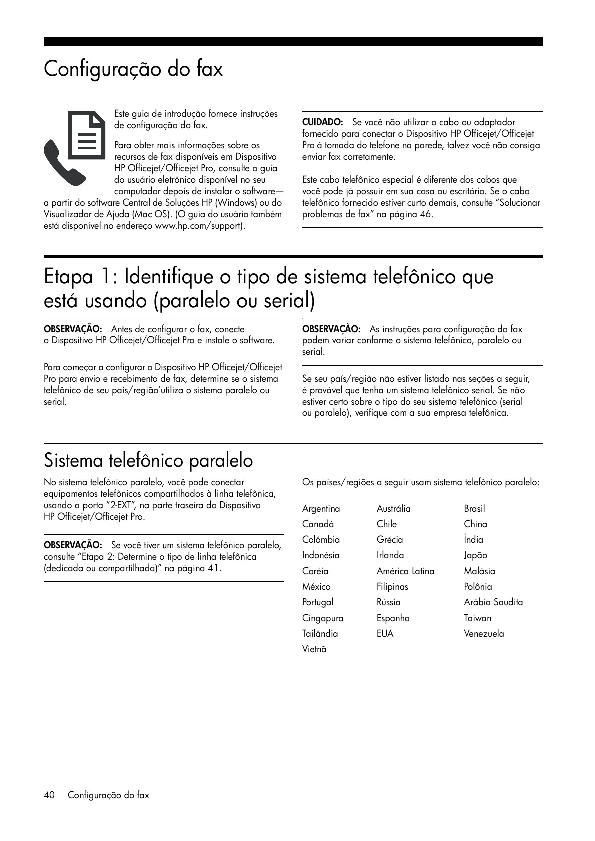 telefônico de seu país/região’utiliza o sistema paralelo ou