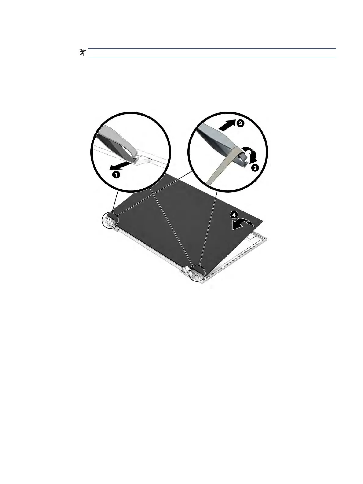 b. Rotate the display panel over and place it next to the display enclosure (4).