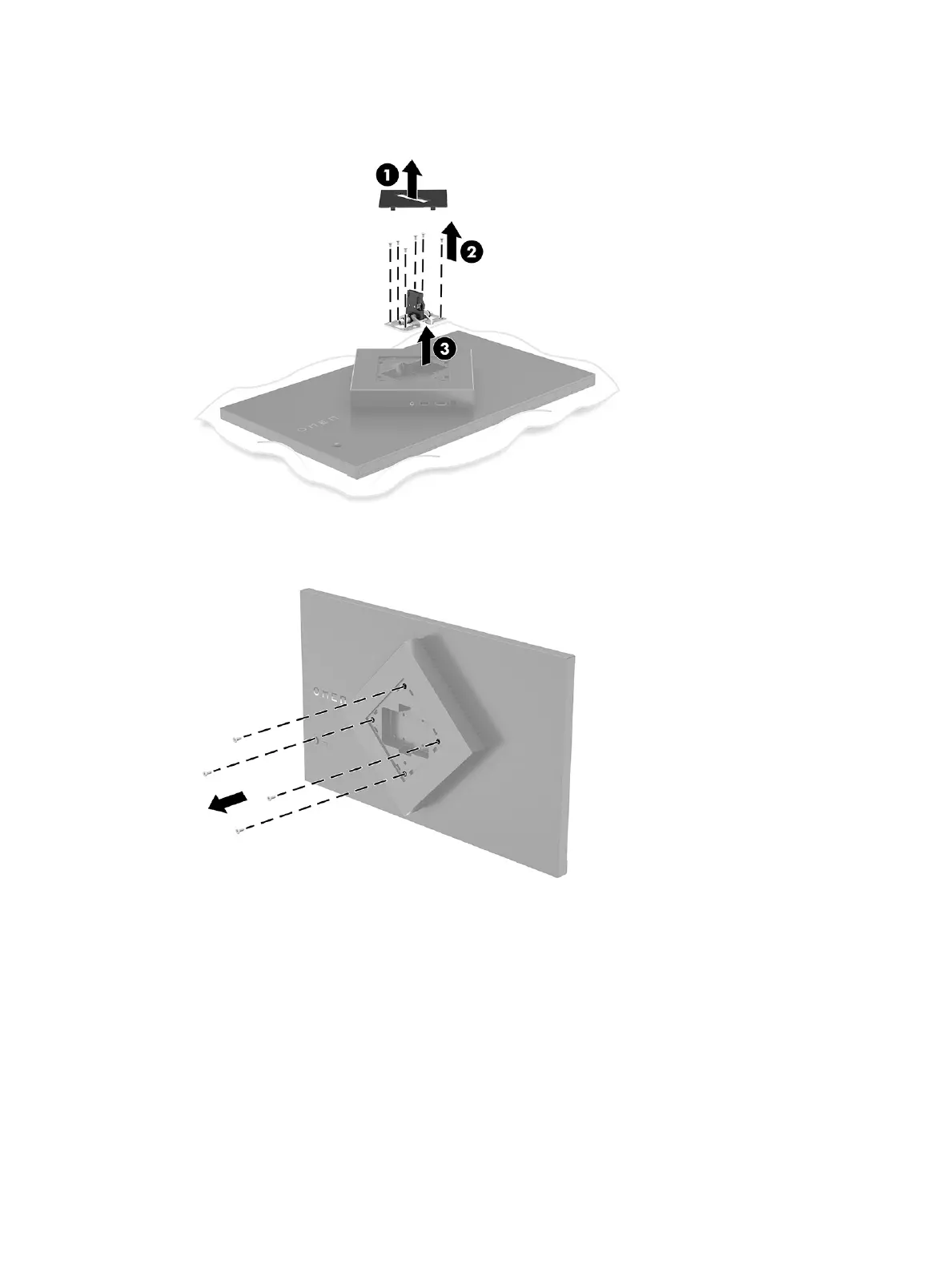 4. Remove the four screws from the VESA holes located on the back of the monitor and use them to attach