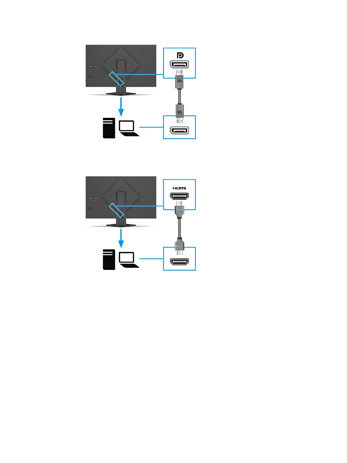 Connect one end of an HDMI cable to the HDMI port on the rear of the monitor and the other end to