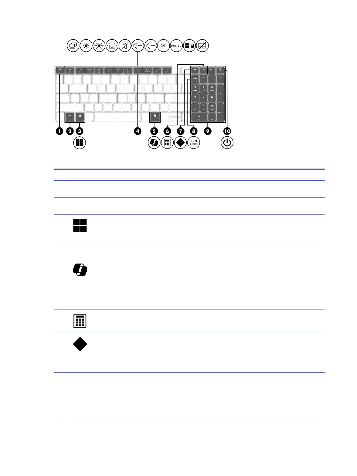 (7) OMEN key Opens the OMEN Gaming Hub software.
