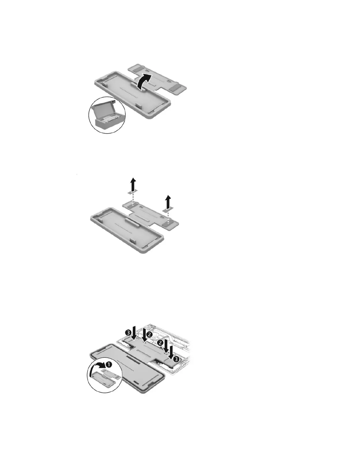 f. Press down on the indentations on the tray (3) to adhere it to the battery.