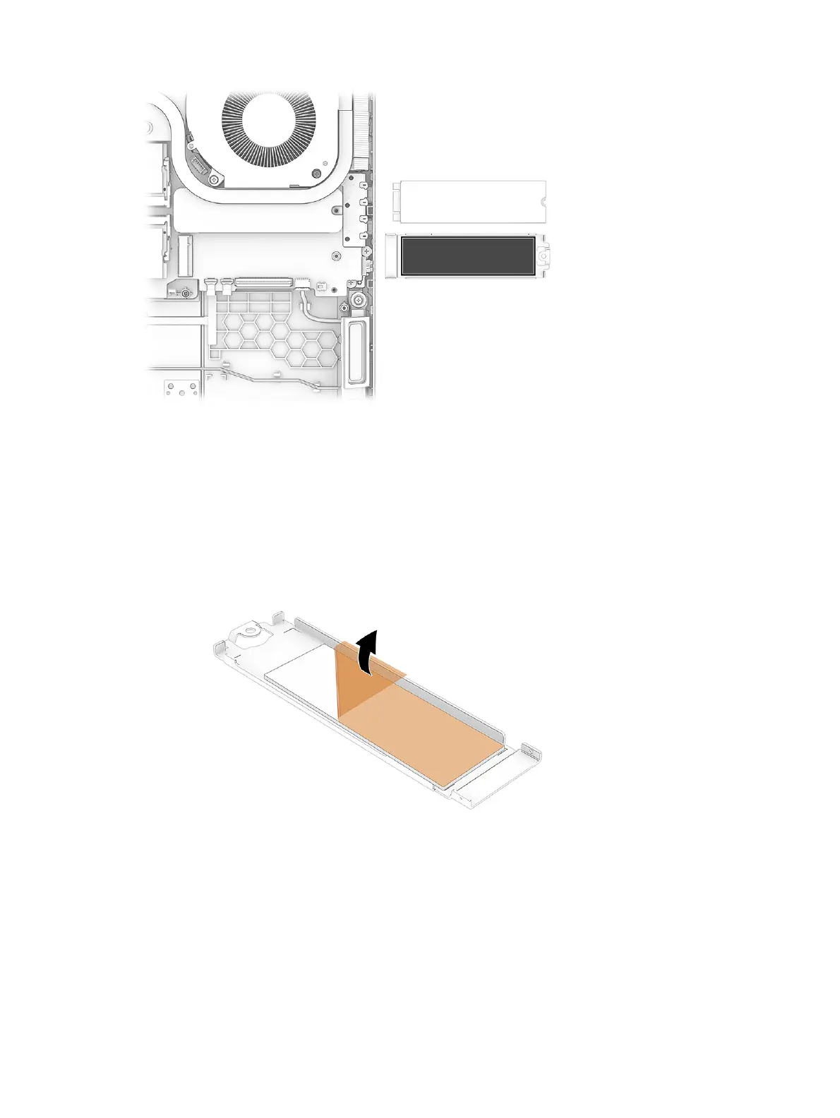 1. If installing a new SSD in an empty secondary SSD slot, remove the film from the thermal pad on the