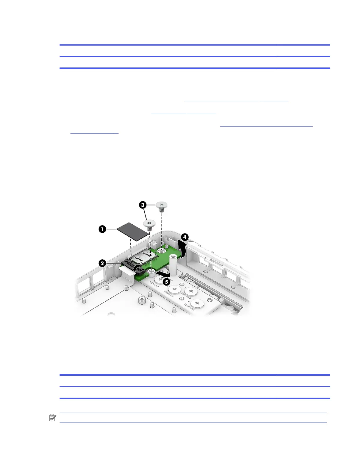 2. Remove the two Phillips M2.0 × 3.5 screws (3) that secure the board to the computer.