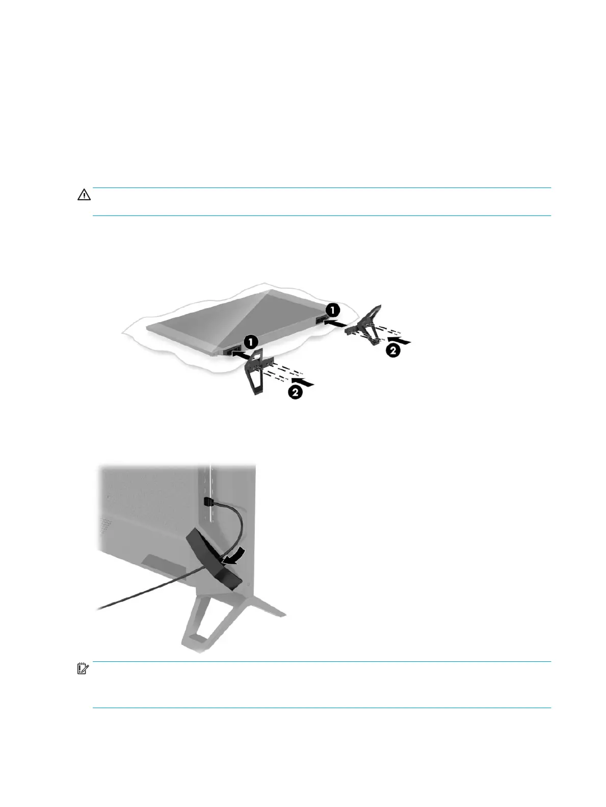 Locate the cable clip on the back of the monitor and then route the cables through the clip.