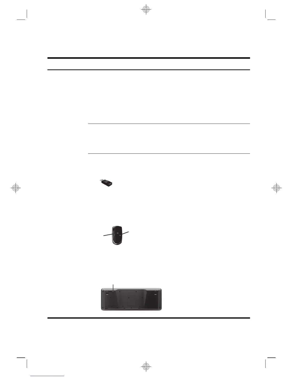 The receiver, wireless keyboard, and wireless mouse shown in the following illustrations