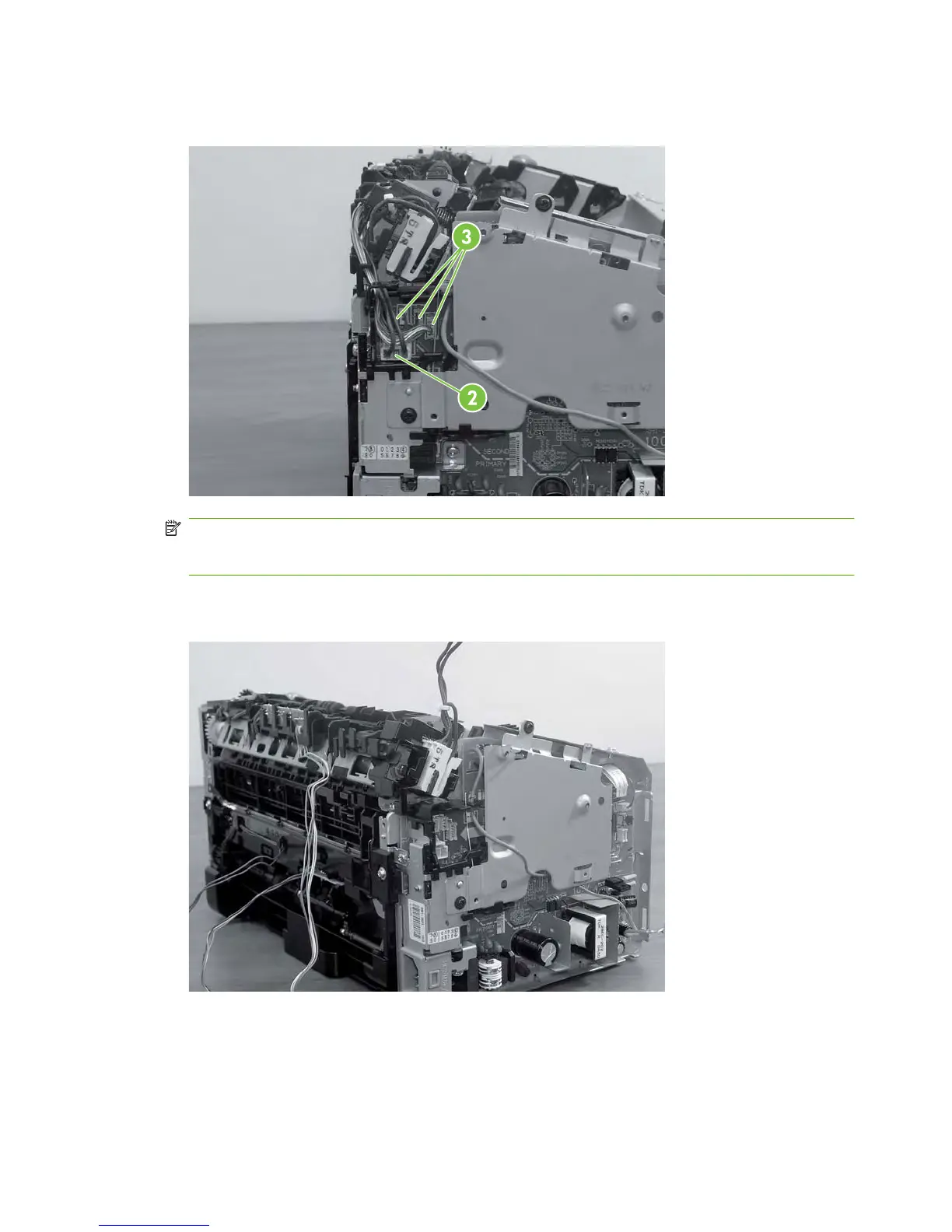 7. Unplug the power connector (callout 2). Unplug the remaining three connectors (callout 3).