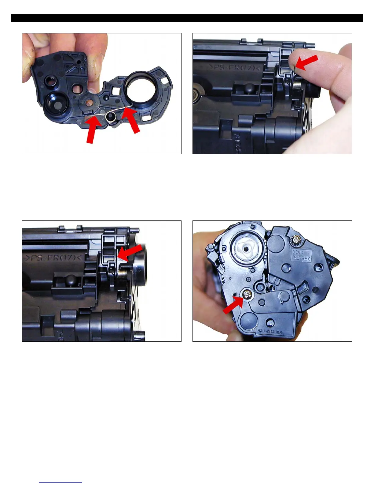 27. With the drum cover spring as shown on the end cap, install the end cap. Lift up the tail of the spring to fit onto the hopper.