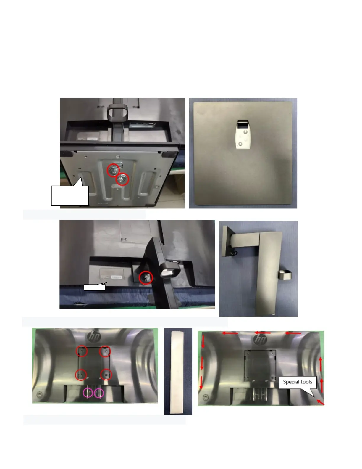 1. Lay the display on soft desk, Twist out the screw and separate base and stand.
