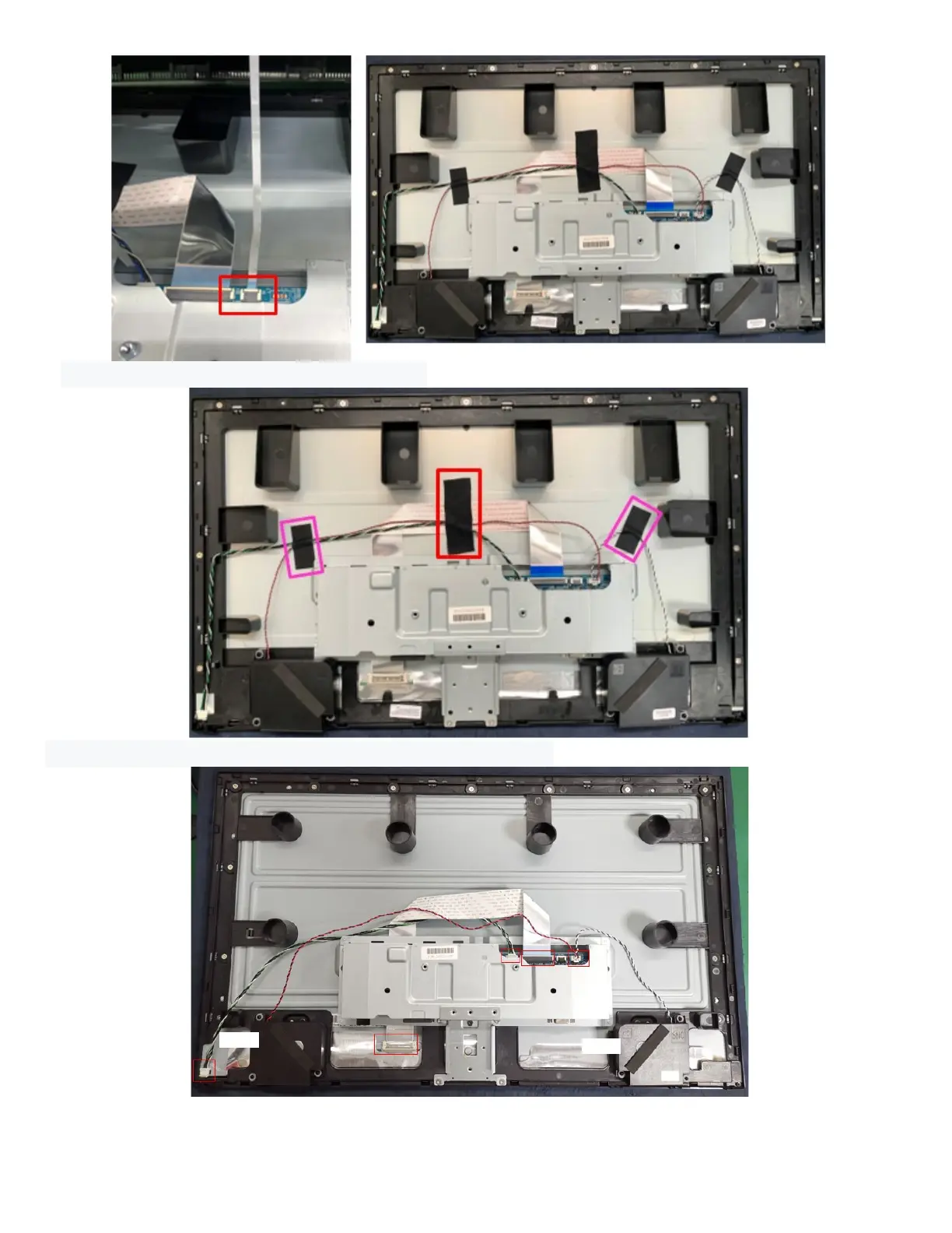 6. Pull out the LVDS/ LED/speaker cable to panel, then take off the SPK box.