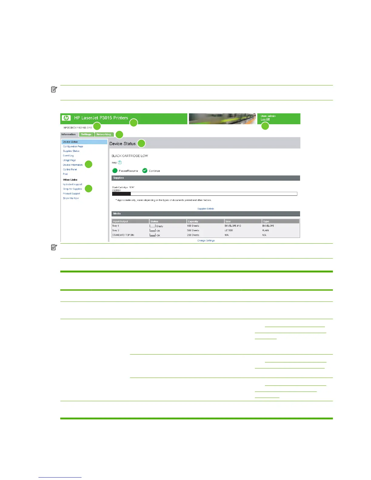 Table 1-1 HP Embedded Web Server