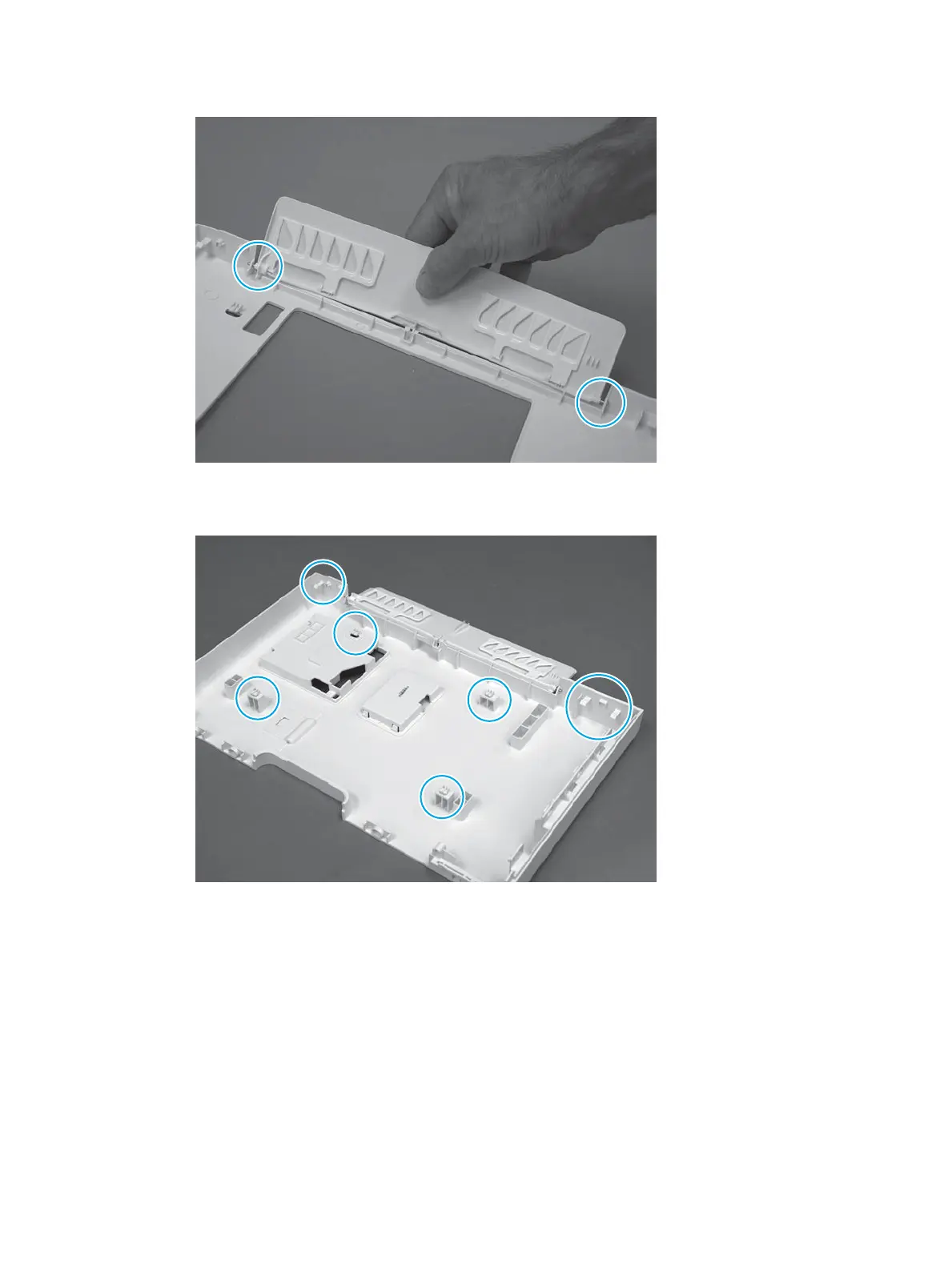 2. Before proceeding, take note of the tabs and hooks on the top cover.